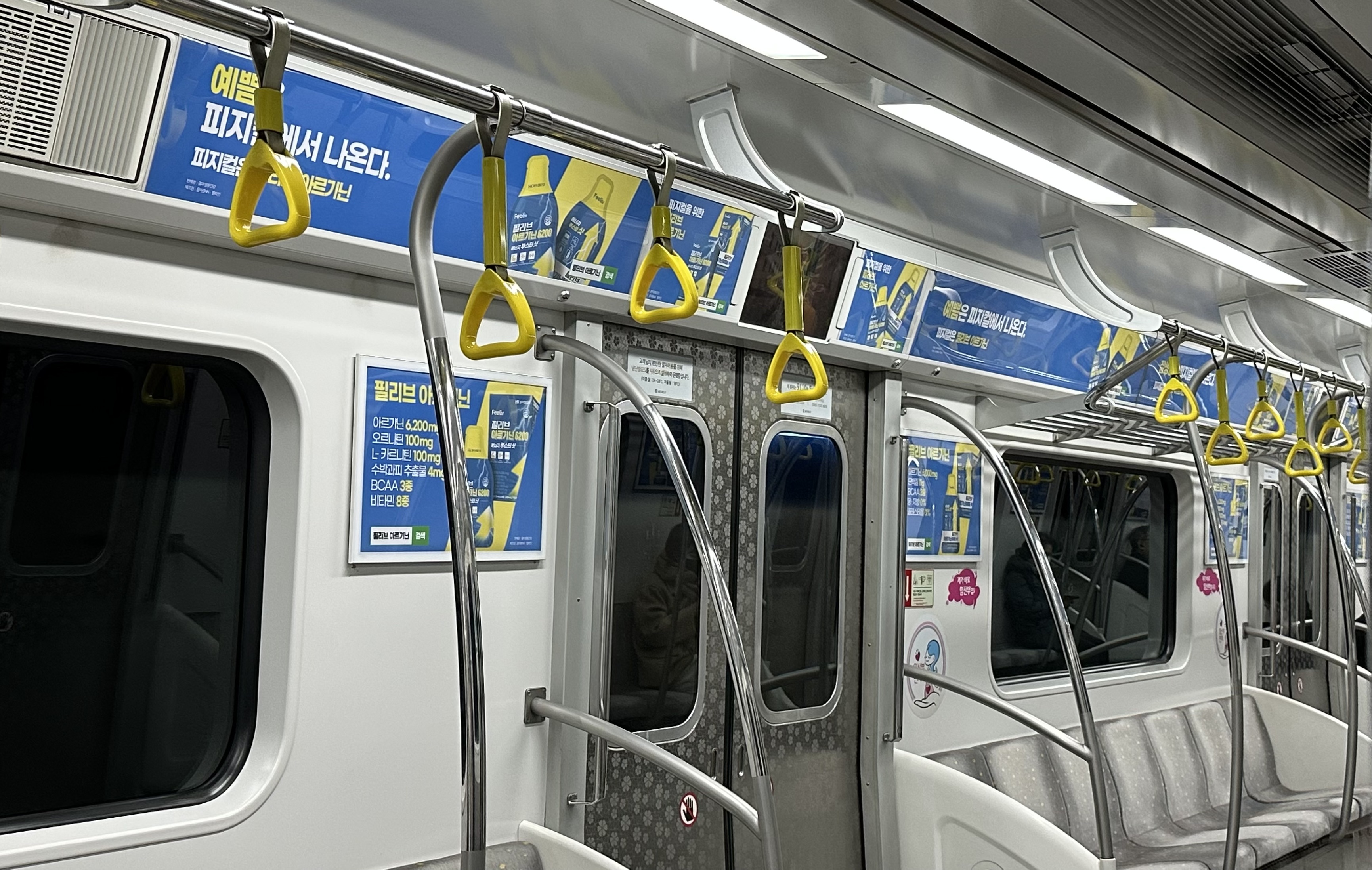 두 달에 한 번 일하러 갈 땐 5호선-9호선을 이용하는데, 가장 최근에 생긴 9호선은 예전부터 있었던 1-4호선과는 달리 광고가 거의 부착되지 않아 비어 있는 데가 많다. 아니면 한 업체에서 한 면을 거의 도배하듯 같은 내용의 광고를 붙여놓곤 하는데, 이용객 개인으로선 서 있거나 앉은 자리 위의 것을 보게 되므로 다양한 광고가 아니어도 상관 없는 것 같다. 가끔 다른 노선을 타면 새로운 내용의 광고를 읽는 재미도 있어 심심치 않다.