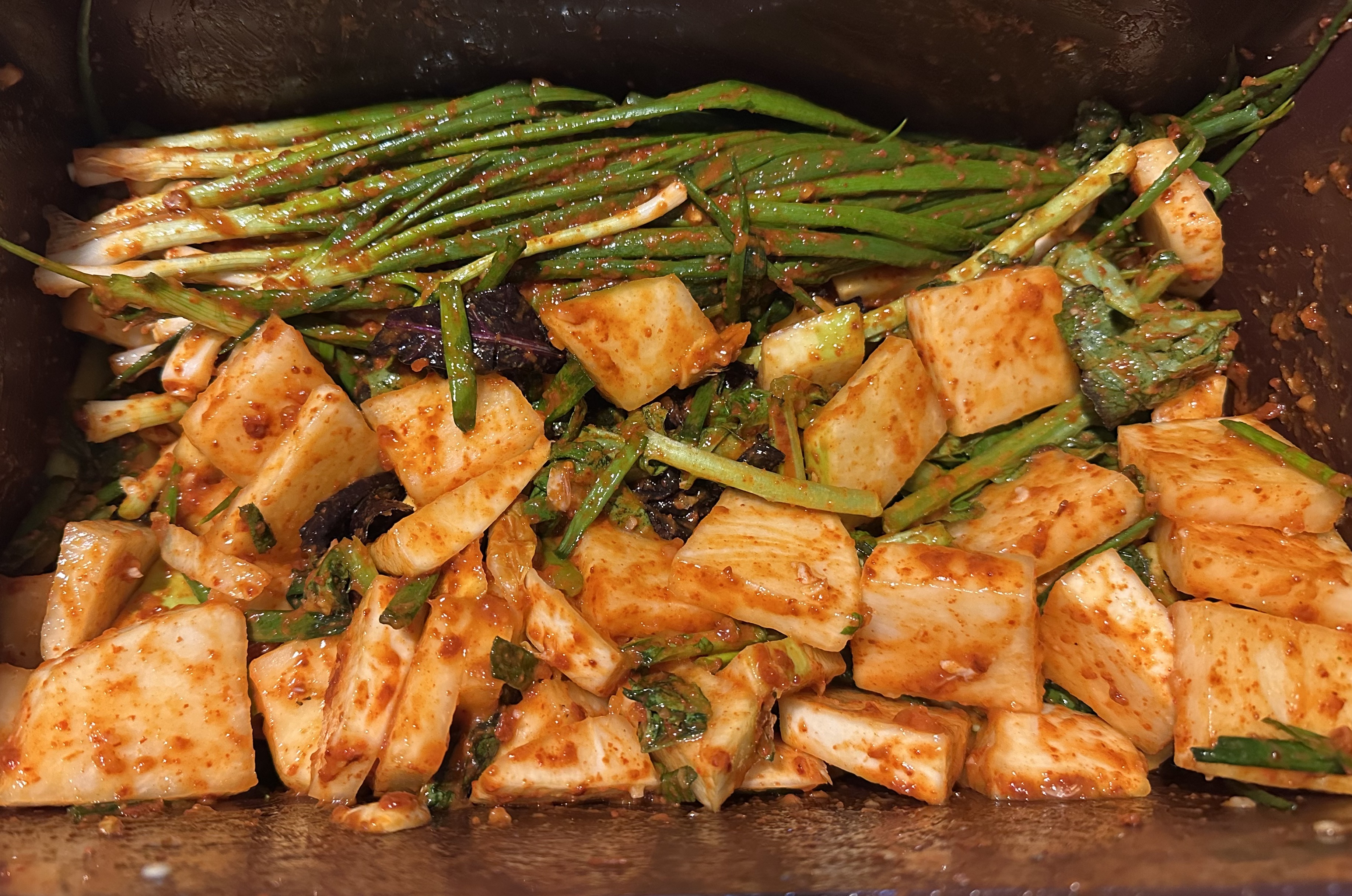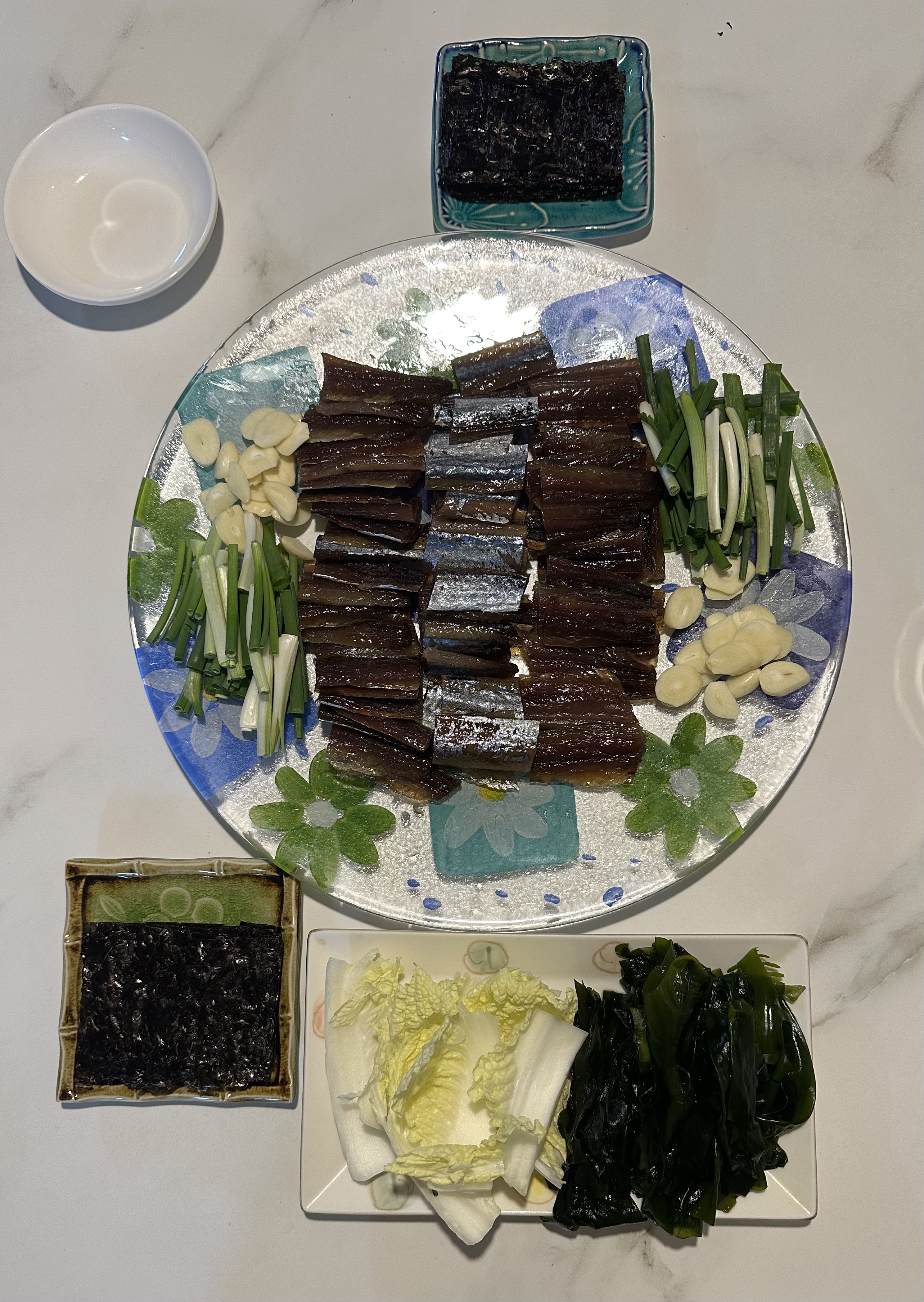 이번 가을엔 어찌하다 보니 전어와 방어를 못 먹었다. 초겨울에 과메기까지 건너뛰면 서운할 것 같아 과메기와 쌈재료까지(12/9/24) 한데 보내주는 곳에 주문했다. 늘 그렇듯이, 정갈하게 다듬은 과메기와 쪽파와 배추, 넉넉한 초장에 물미역과 마른 김까지 세트로 포장돼 왔다. 적당한 크기로 자르고 큰 접시에 담아내니 보는 것만으로도 푸짐했다.