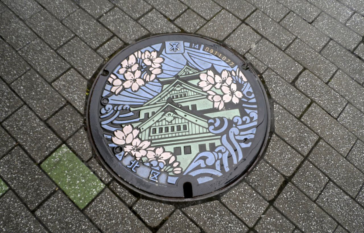 지금까지 본 맨홀 가운데 가장 아름다웠던 건, 일본 오사카에서 본 것으로, 오사카를 상징하는 오사카 성과 일본의 나라꽃인 사쿠라(벚꽃)가 한데 어우러져 은은한 아름다움을 드러내고 있었다. 역시 컬러도 은은하게 잘 써서 발로 밟고 다니기가 미안할 정도였다. 우리처럼 굳이 기능이나 관리주체를 대문짝만하게 명기해 놓지 않고(누가 봐도 알 테니까^^) 그림을 이빠이(いっぱい) 키운 것도 추가 점수를 줄만한 센스로 인정할만 했다.