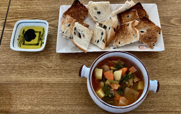 작업은 2단계로 이루어졌다. 올리브유를 두르고 감자, 당근, 양배추, 샐러리 줄기 등을 넣고 버터 덩어리와 함께 볶아주다가 물을 붓고 끓이면서 샐러리 이파리와 그린 빈 그리고 홀 토마토 소스를 넣어주면 되는 크게 어렵지 않은 작업이었다. 아, 그리고 월계수 잎 몇 개를 넣어 향을 냈다.