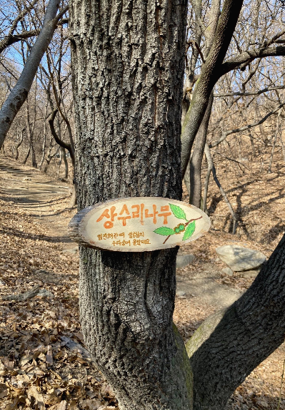 아이들이 만든 나무 이름표 가운데는 어른들도 잘 모르는 나무도 간간이 보인다. 그 중 추어탕에 넣는 산초나무가 보여 반가웠다. 이름표가 달려 있지 않았더라면 도무지 무슨 나무인지 모르고 지나칠 뻔 했는데, 여름 가을에 열매가 맺히면 산초 냄새가 나는지 맡아봐아겠다.