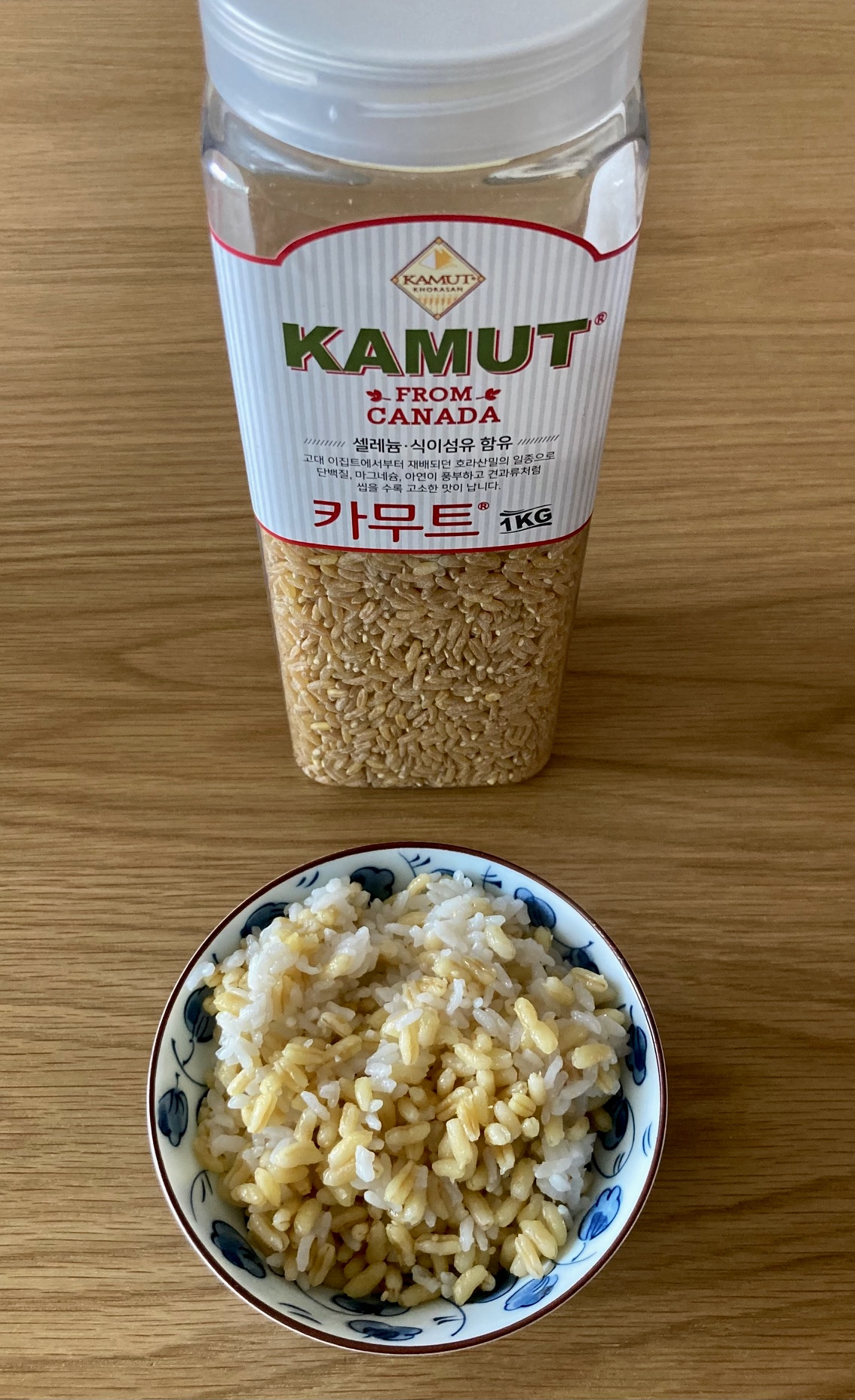 코스트코에 함께 간 아내가 곡물 코너에서 못 들어본 이름의 곡물을 한 병 샀다. 검은콩 같은 잡곡류가 들어 있는 병에 카무트(Camut)란 처음 들어보는 이집트 밀이 들어 있었는데, 캐나다 산이란다. 어디서 이게 괜찮다는 말을 들은 듯 선뜻 사길래, 콩이나 조, 수수처럼 밥 지을 때 조금 넣나 보다 했는데, 라벨의 설명서엔 백미와 1:1 비율로 넣으라고 돼 있다.