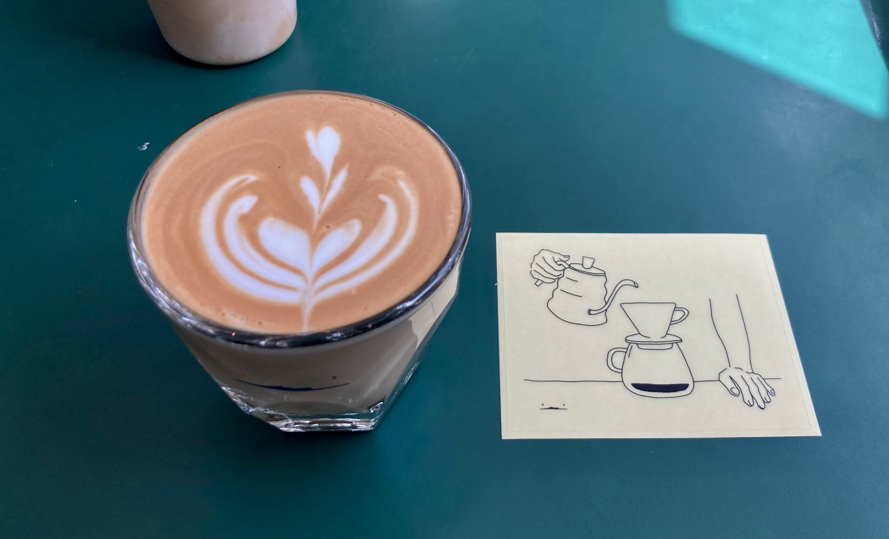 3층에 옥탑방이 있는 이 카페는 이름 그대로 외관을 파랗게 칠하고 화이트톤 격자 창으로 골목에서 단연 눈에 띄었다. 이름도 멋있고, 커피 맛도 좋았지만, 커피와 관련된 일러스트 스티커 몇 종류를 구비하고 가져가게 하는 것도 기분 좋은 서비스였다. 셋이 갔으니 세 장을 골라 왔는데, 아내 스마트폰과 노트북 그리고 에어컨에 하나씩 붙였다.
