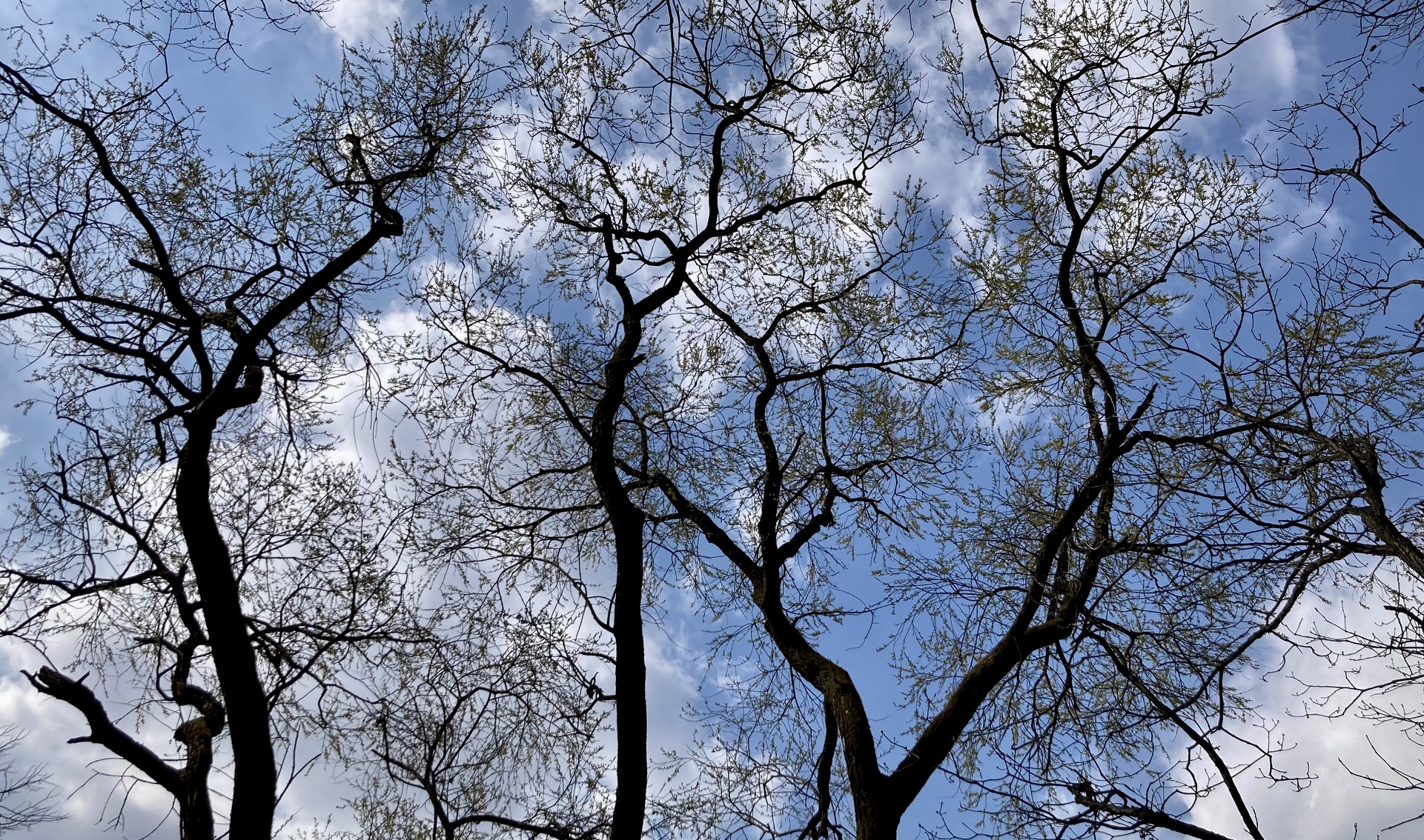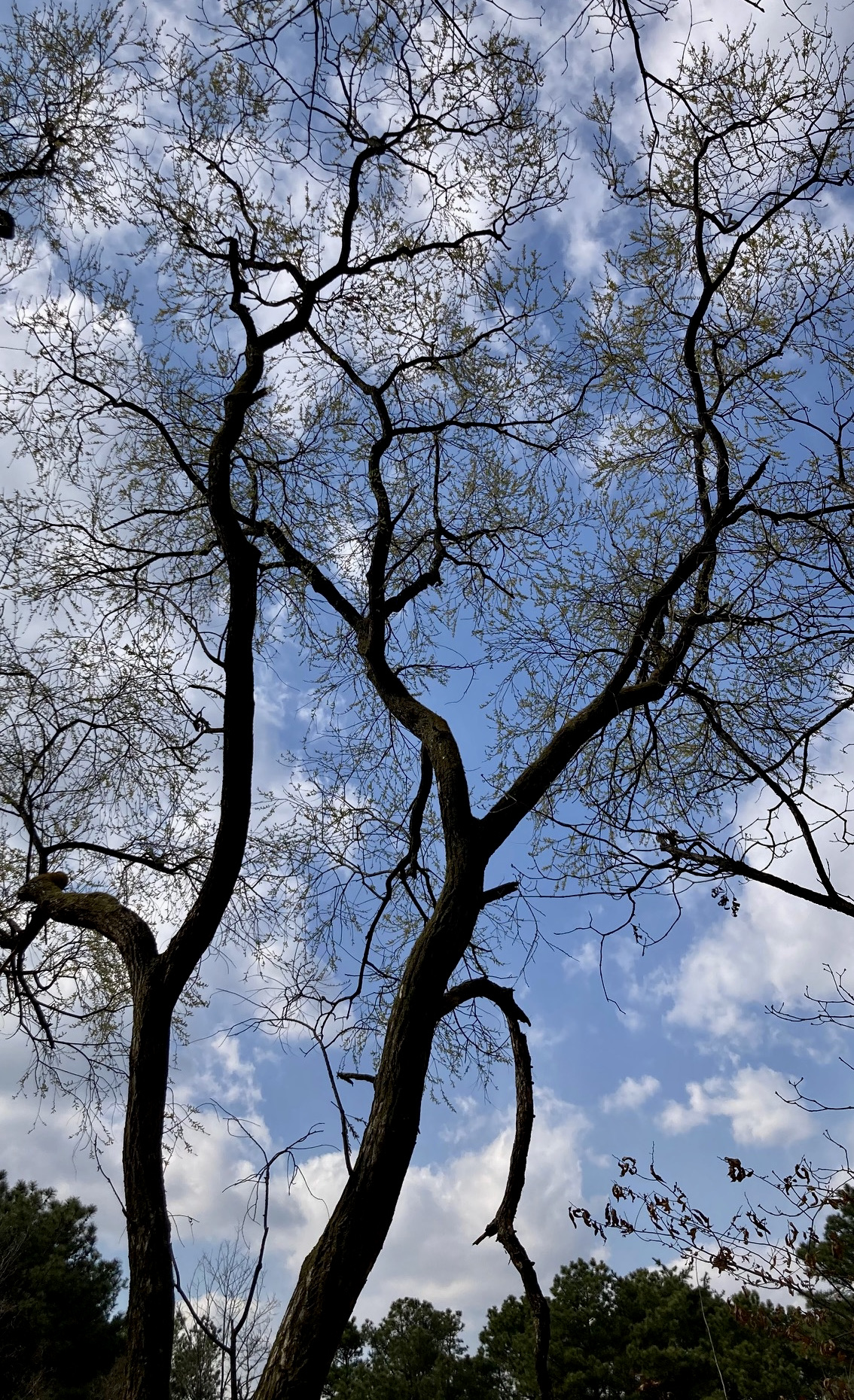 이런, 꽃은 이제 막 피어나려는듯 기지개를 하고 있었지만, 나무들 사이로 올려다 보는 하늘이 5월 아니 7월, 9월의 맑은 하늘을 방불케 할 정도로 맑고 청량했다. 나뭇가지들도 한겨울의 회색과 잿빛을 버리고 슬슬 봄기운을 받고 있는 것 같아 하늘이 배경인지, 나뭇가지들이 배경인지 우열을 가리기 어려울 정도였다. 이런 풍경은 언제 봐도 상쾌하다.