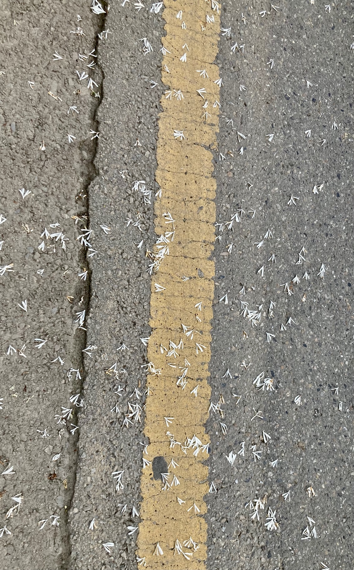 이팝나무 꽃잎들은 가지에 달려 있을 때뿐 아니라 길가에 떨어져서도 그 자취가 아름다워, 바람에 날려 떨어져 수북하게 쌓인 벚꽃잋(4/18/16) 비슷한 느낌을 주기도 한다. 아마도 이파리가 작고 귀여운 게 속절없이 떨어져 뒹구는 게 아련해 보이기 때문인 것 같다.