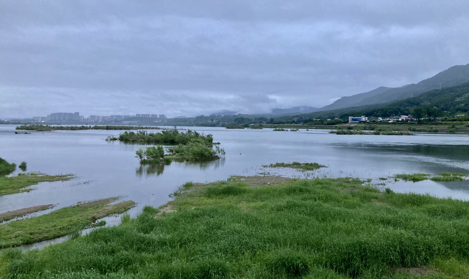일주일에 하루 또는 이틀은 새벽 산책을 하고 있다. 작년부터 출근하지 않게 되면서 새벽 서너 시면 잠깐 잠이 깨는데, 내쳐 자는 날이 많지만, 다섯시 반에 강변 산책을 나가 시간 반 정도 걷다 오곤 한다. 새벽 산책의 묘미는 날이 밝아지면서 잠에서 깨는 풍경들인데, 맑은 날도 좋지만, 약간 흐린 날, 특히 전 날 비가 오거나 흐렸다가 개는 날 풍경이 참 좋다.
