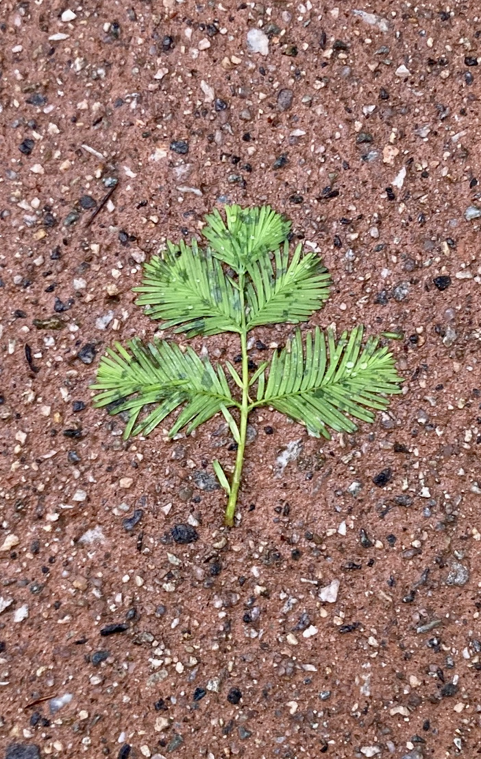 잎 모양이 비교적 둥그렇고 통통하게 달린 것도 있고, 생선 모양으로 길쭉한 것도 있는데, 달려 있던 가지의 높이나 방향에 따라 다른 성장을 보이기 때문일지 모르겠다. 여러 잎이 달린 것도 보이지만, 하나씩 독립해 있는 것들도 많이 보인다. 또 바로 누워 있는 것도 있고, 뒤집혀 있는 것도 많이 보인다. 1km 정도 이어지는 길 양 옆에 도열한 메타세콰이어 나무들 덕에 이런저런 풍경을 만끽한다.