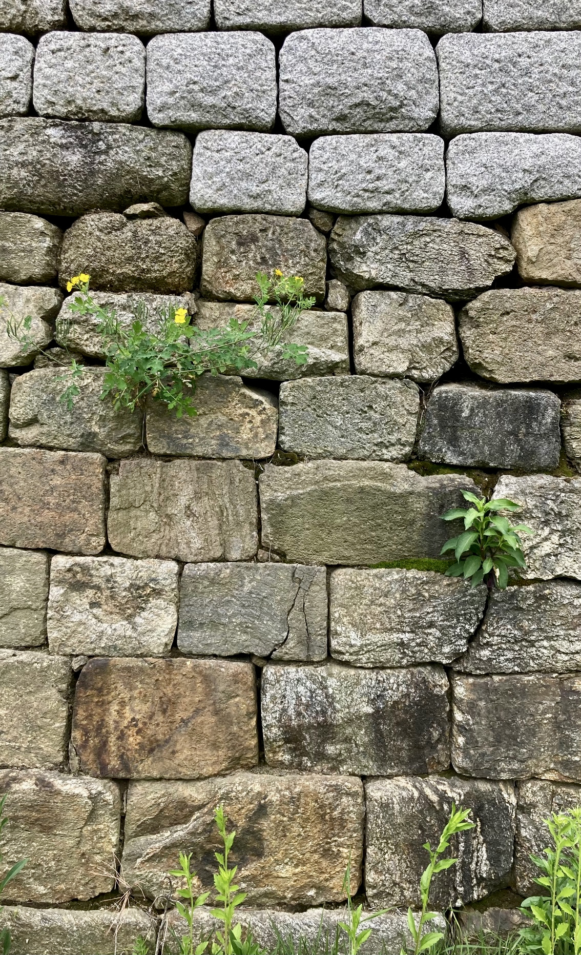 아무것도 없으면 너무 심심할까봐 돌담들 사이에 야생화들이 피었다. 겉은 돌담이지만, 속은 흙으로 되어 있을 테니 이렇게 풀이 자라면서 꽃도 피어난 것일 게다. 산성은 의구한데, 언제부터 이렇게 꽃이 피고 지기를 거듭했을지 모르겠다. 기특해서 몇 걸음 올라가서 가까이 찍어봤다. 노란 꽃잎이 네 개인 걸 보니 아기똥풀이다.