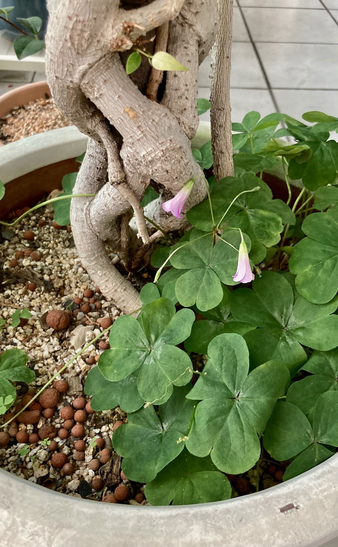 우리집에서 가장 키가 크고 오래 된 벤자민 화분에 얼마 전부터 사랑초가 피어나기 시작했다. 다른 화분에서도 종종 일어나는 일인지라 그러려니 하고 지나갔는데, 며칠 전엔 작은 꽃까지, 그것도 두 개나 피워냈다. 게다가 이 꽃들은 아내보다 내가 먼저 그 존재를 알아본지라, 모처럼 으쓱했다.