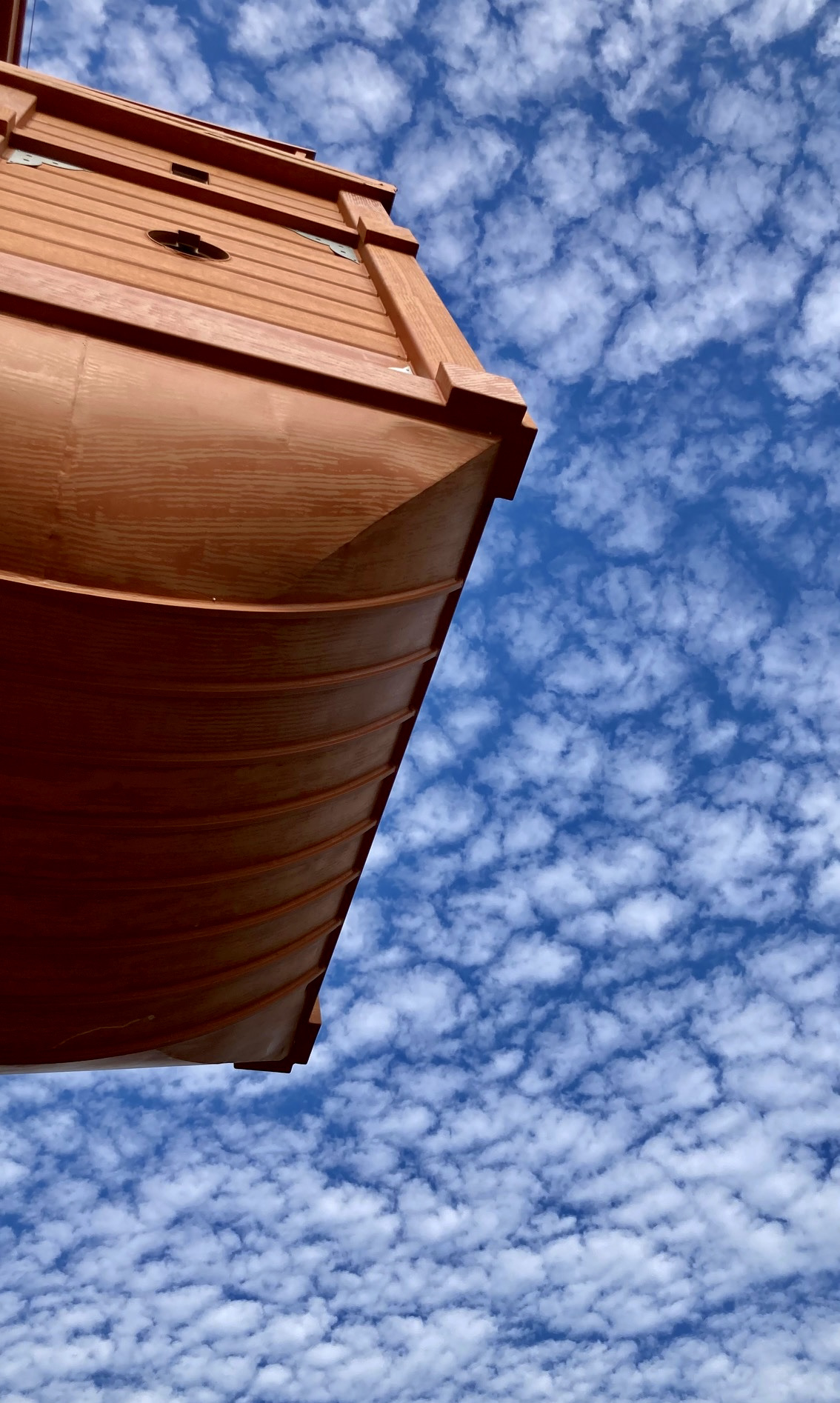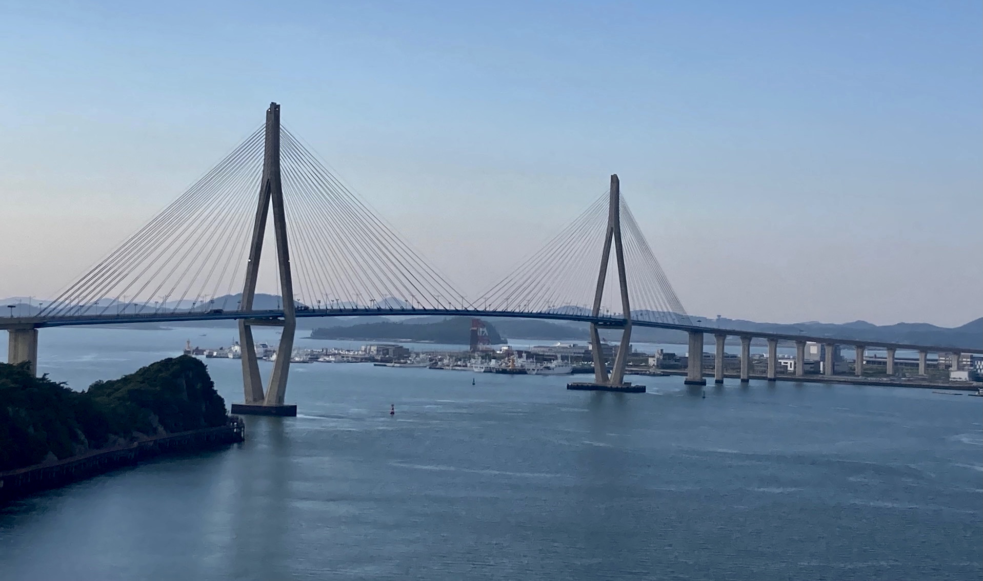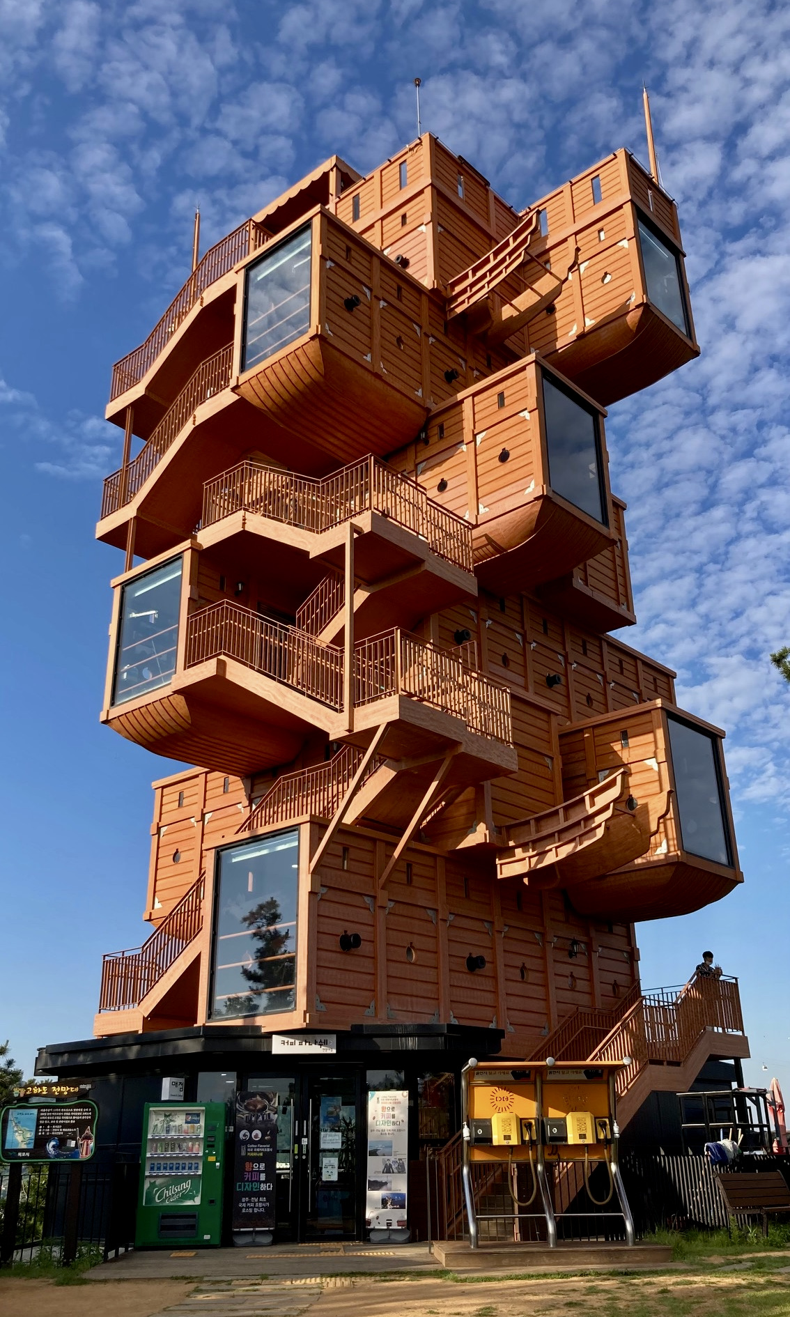 이런 풍경을 하늘이 좋았다고 해야 할지, 아니면 구름이 좋았다고 해야 할지 모르겠다. 목포대교를 건너 섬에서 바라보는 하늘은 정말 근사했다. 목포 신항이 있는 고하도 케이블카 종점에서 산책로를 10여분 걸어 올라가니 기대했던 것보다 훨씬 멋진 전망대가 기다리고 있었다. 좌우 사방 격자형으로 돌출된 전망대는 이순신 장군에게 남아 있던 13척의 판옥선을 모티브로 건축해 더 의미 있게 다가왔다.