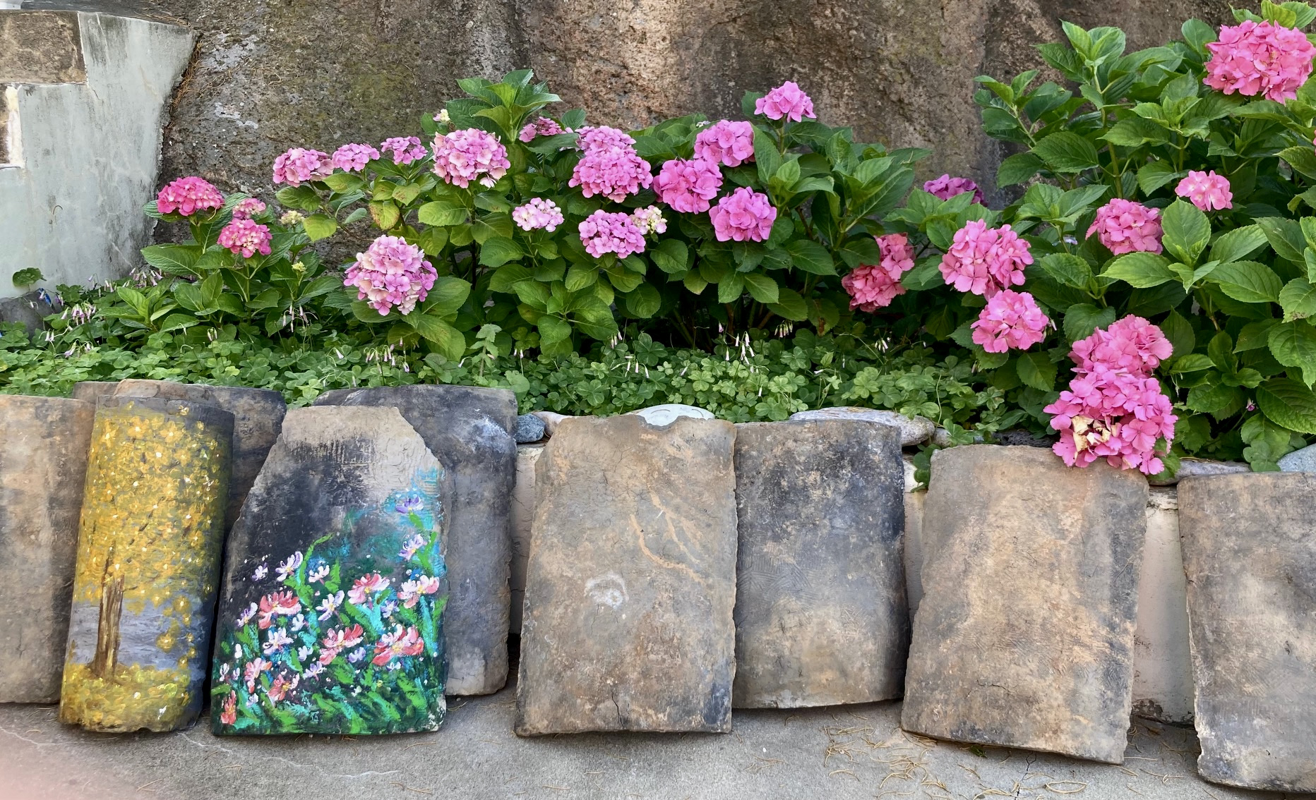안마당은 어떨까 궁금했는데, 기대했던 대로 수수하고 안온한 아름다움을 선사해 주었다. 이 절엔 스님이나 신도들 가운데 붓칠하는 예술가가 있는지, 기와마다 예쁜 꽃그림들을 그려 놓았는데, 이쯤 되면 진짜 꽃과 그림꽃이 우열을 가리기 힘들겠다 싶었다. 목포의 어느 작은 절간에서 뜻밖의 평안을 누리고 왔다.