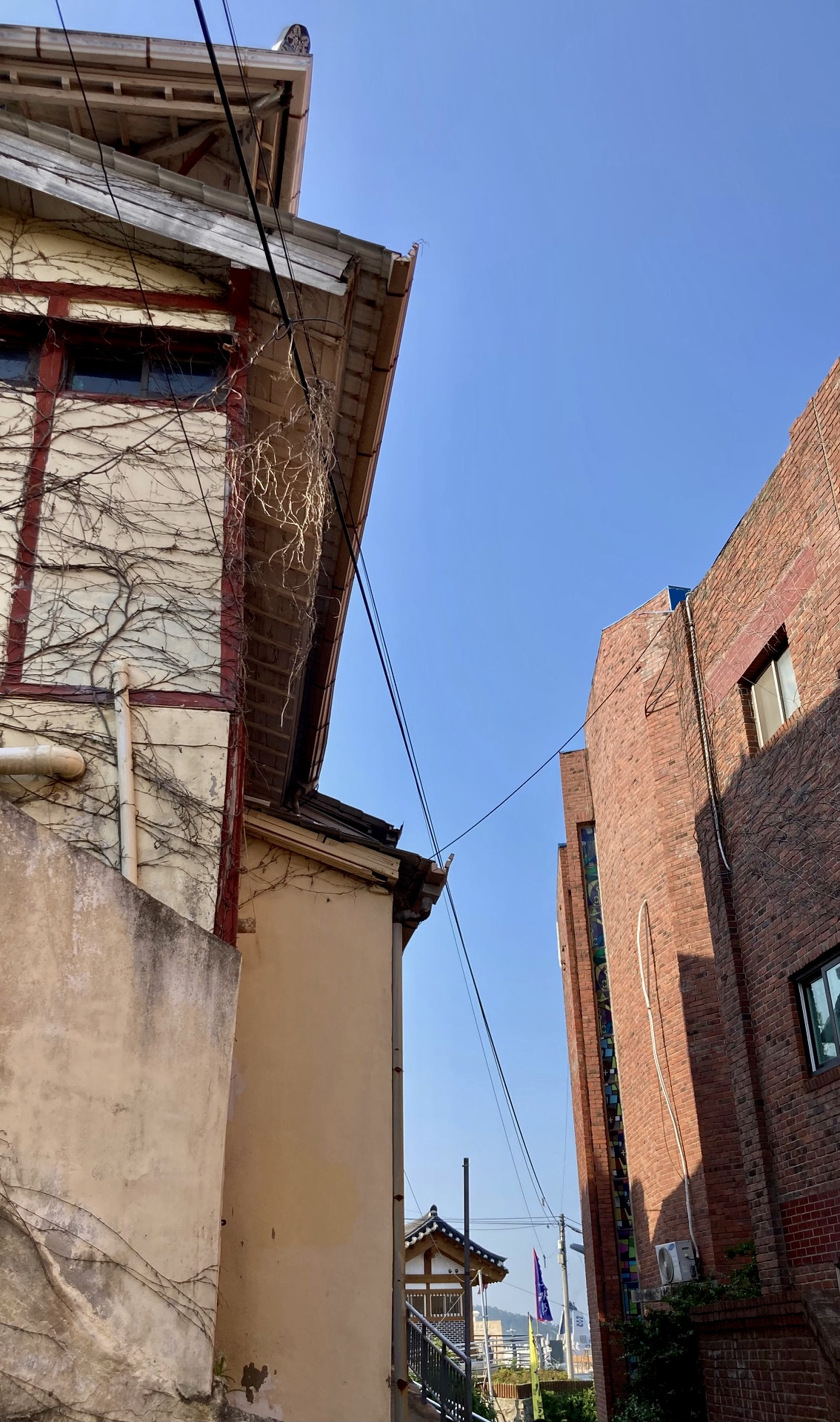 목포에서 묵었던 집이 조선 시대 수군이 있던 목포진(鎭, camp site) 옆이어서 둘째날 아침에 산책을 했다. 목포진은 야트막한 언덕 위에 있었는데, 올라가는 길 좁은 골목 양편에 교회와 절간이 마주보고 있었다(1927년에 세워진 절이 먼저 자리 잡은듯 하다).