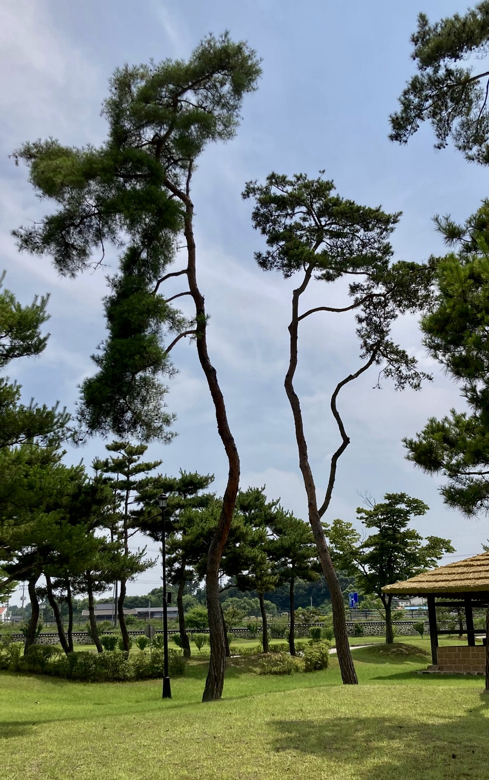 식사 후 주차장으로 걸어가는데 호리호리한 소나무 두 그루가 마치 한 몸이었다가 갈라진 것 같은 모양새를 하고 있었다. 보이는 각도가 절묘해 그리 보인 것이겠지만, 둘이 붙어 있었거나 너무 간격을 벌렸다면 별다른 감흥이 없었을 텐데, 적당한 간격을 벌리며 따로 서 있는 게 절묘한 균형과 조화를 이루었다. 항아리들은 파안대소하고, 소나무들은 유유자적하는 여름날이었다.