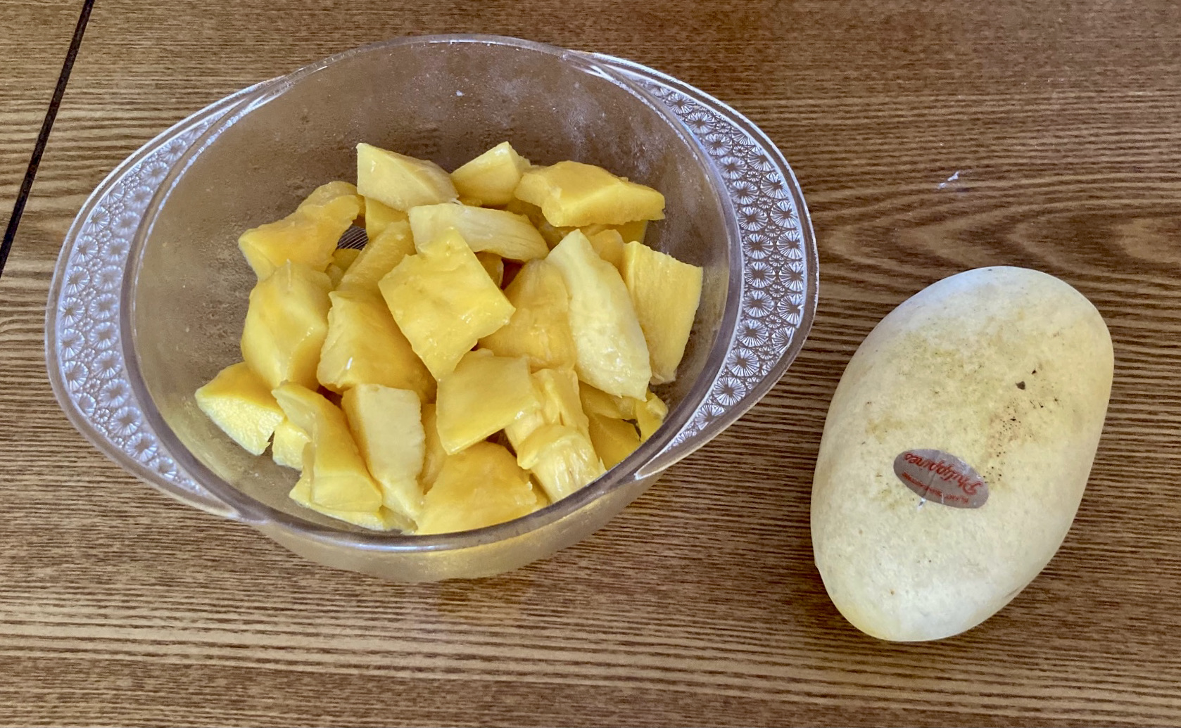 다른 가정이 망고를 보내왔는데, 택배 알림문자에 말린 망고인가 보다 했는데, 망고가 가득한 과일상자였다. 주로 냉동 망고만 먹고 동남아에 갈 때나 사 먹곤 했는데, 이렇게 박스째 받아 통으로 먹는 건 난생 처음이다. 처음엔 망고 특유의 튜브형으로 모양을 내서 먹다가 너무 많아서 그냥 잘라서 쟁여놓고 아무때나 꺼내 먹는 호사를 누리고 있다. 망고 망고!다.