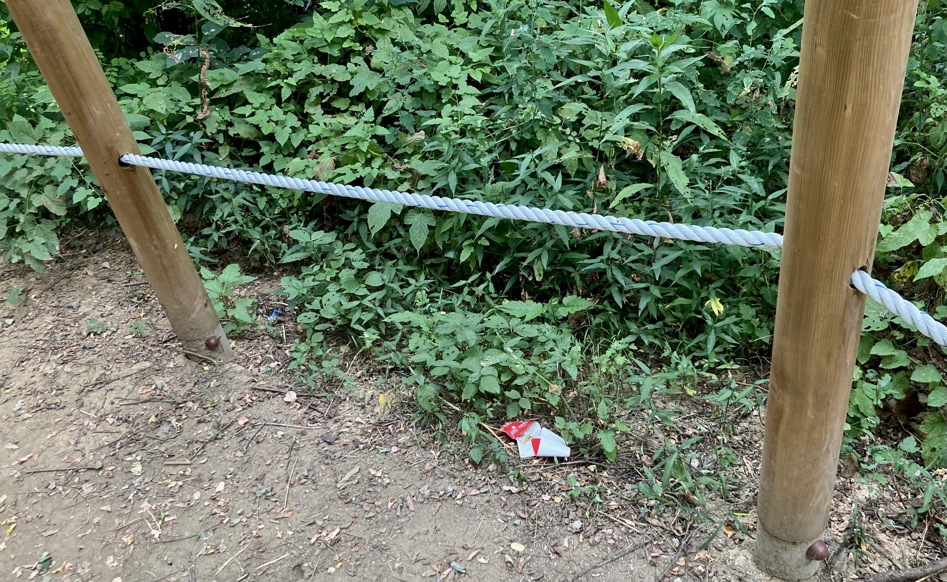 음~ 그런데 조금 오버했는지, 산책로의 밤길을 밝히는 가로등에도 붙여 놓았고, 경사진 길에 세워 놓은 로프 기둥에도 붙였던 모양이다. 오가는 누군가의 눈에 거슬렸는지 떼어져 길에 방치돼 있었다. 붙인 이야 한 번 들어보라는 좋은 뜻으로 한 것이겠지만, 엄연히 허가받지 않은 불법 부착물 취급을 받아도 할 말은 없어 보였다.