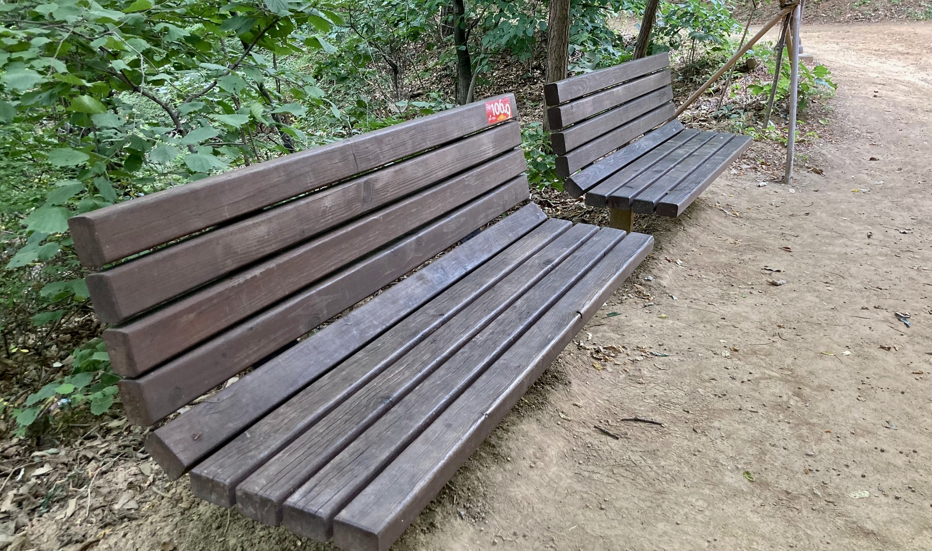약수터에 가서 물을 뜬 다음 산길 산첵로를 잠시 걸었다. 후덥지근한 날들이 연일 계속되는지라 늦은 오후의 산길이지만, 쉬 지칠 수 있어 30분 정도 아내와 가볍게 걸었다. 익숙한 풍경들 사이로 벤치에 붙은 빨간 스티커가 눈에 들어왔다. 라디오 종교방송사 주파수를 크게 써 놓은 걸로, 원래는 차량 뒷 부분에 붙이는 용도인데, 누군가가 용기(?)를 냈나 보다.