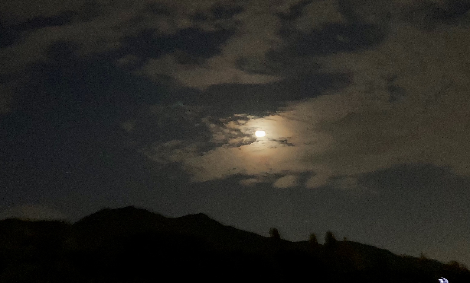 어느 저녁엔 강변 산책을 마치고 돌아오는데, 검단산 위로 뜬 밝은 달을 구름이 호위하는 그림을 연출해 주었다. 마침 산책길에 나섰길래 이런 산 위 구름과 달빛을 바라볼 수 있었다. 전에 쓰던 디카들은 이런 어둠 속 풍경을 잘 잡아주지 못했는데, 아이폰은 선명하진 않아도 분위기는 느낄 수 있는 사진을 남겨주었다.
