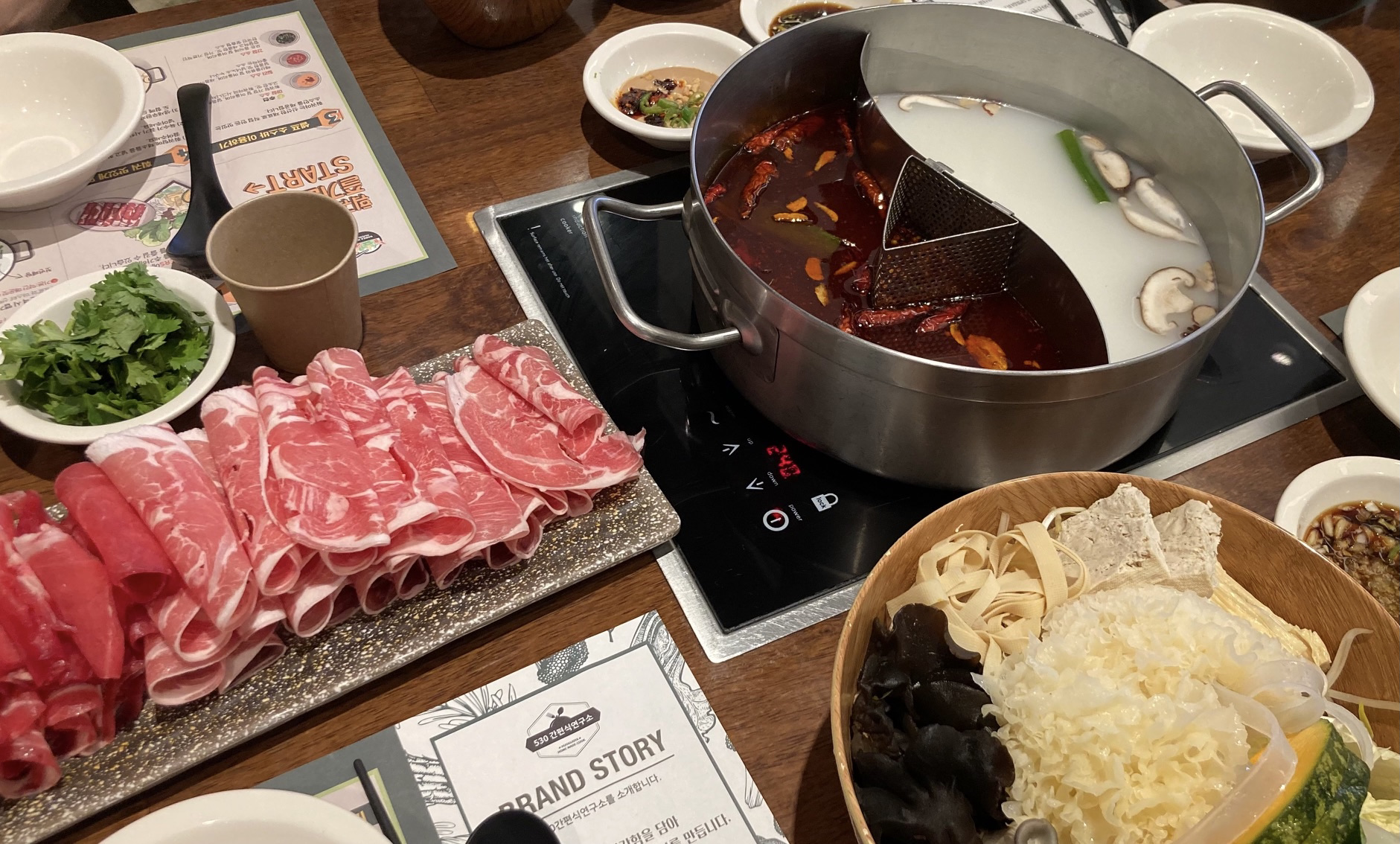 두어 주 전 조카 결혼식에 온 식구가 다녀왔는데, 코로나 여파로 식사가 안 나왔다. 돌아오는 차 안에서 극과 극인 냉면과 훠궈 중 g가 강력하게 민 훠궈를 먹기로 하고 스타필드 1층 훠궈야(4/17/20)로 향했다.