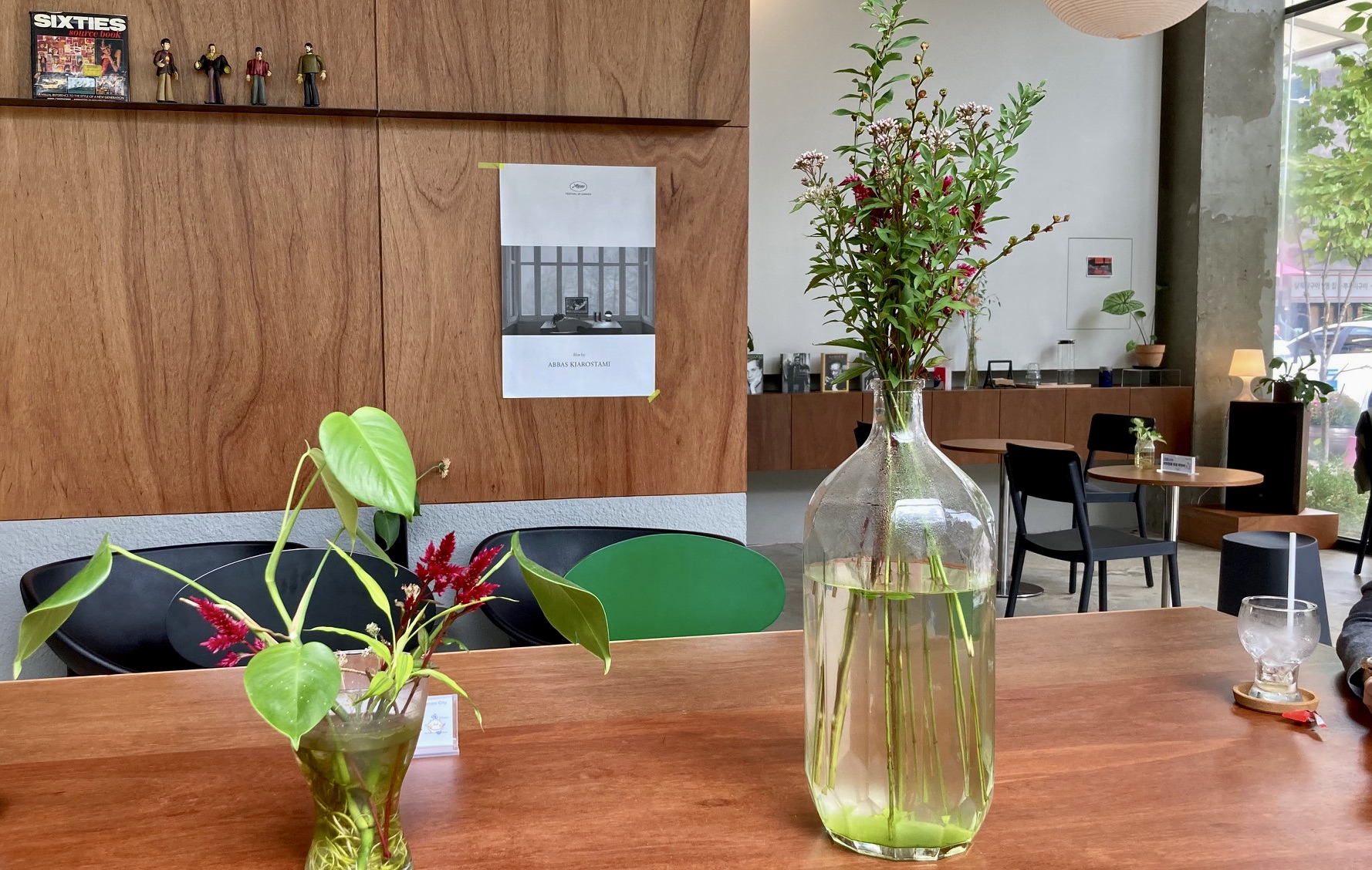 g가 미사 지구에 괜찮은 카페가 생겼다길래 휴일에 갔다 왔다. 아파트 숲들 한 쪽 2-3층 빌라 단지 한 구석에 있는데, 상가 건물이어선지 1층 층고가 높은데다 두 면이 유리창이어서 첫인상부터 안온하고 쾌적했다. 10여 명이 둘러앉을 만한 메인 테이블 위에 물꽂이해 놓은 화초들과 잘 가꾼 화초들이 눈을 시원하게 해 주었다.