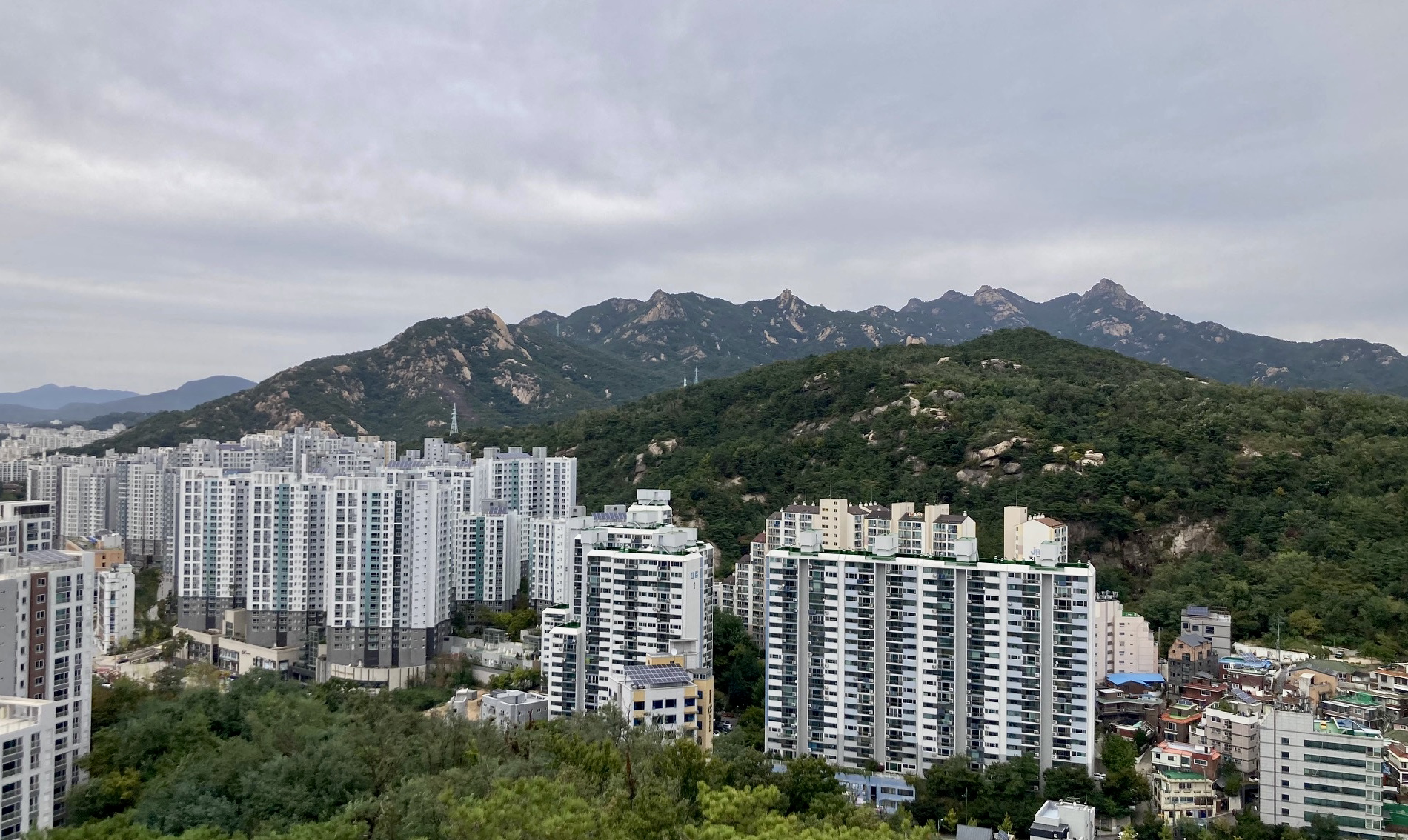 가볍게 등산과 산책을 할 수 있도록 산길이 잘 나 있다는 말에 한 바퀴 돌고 왔다. 초입에 제법 길게 이어지는 계단을 오르니 내부순환도로와 서대문/은평 일대의 아파트 숲 뒤로 안산과 북한산이 펼쳐졌다.