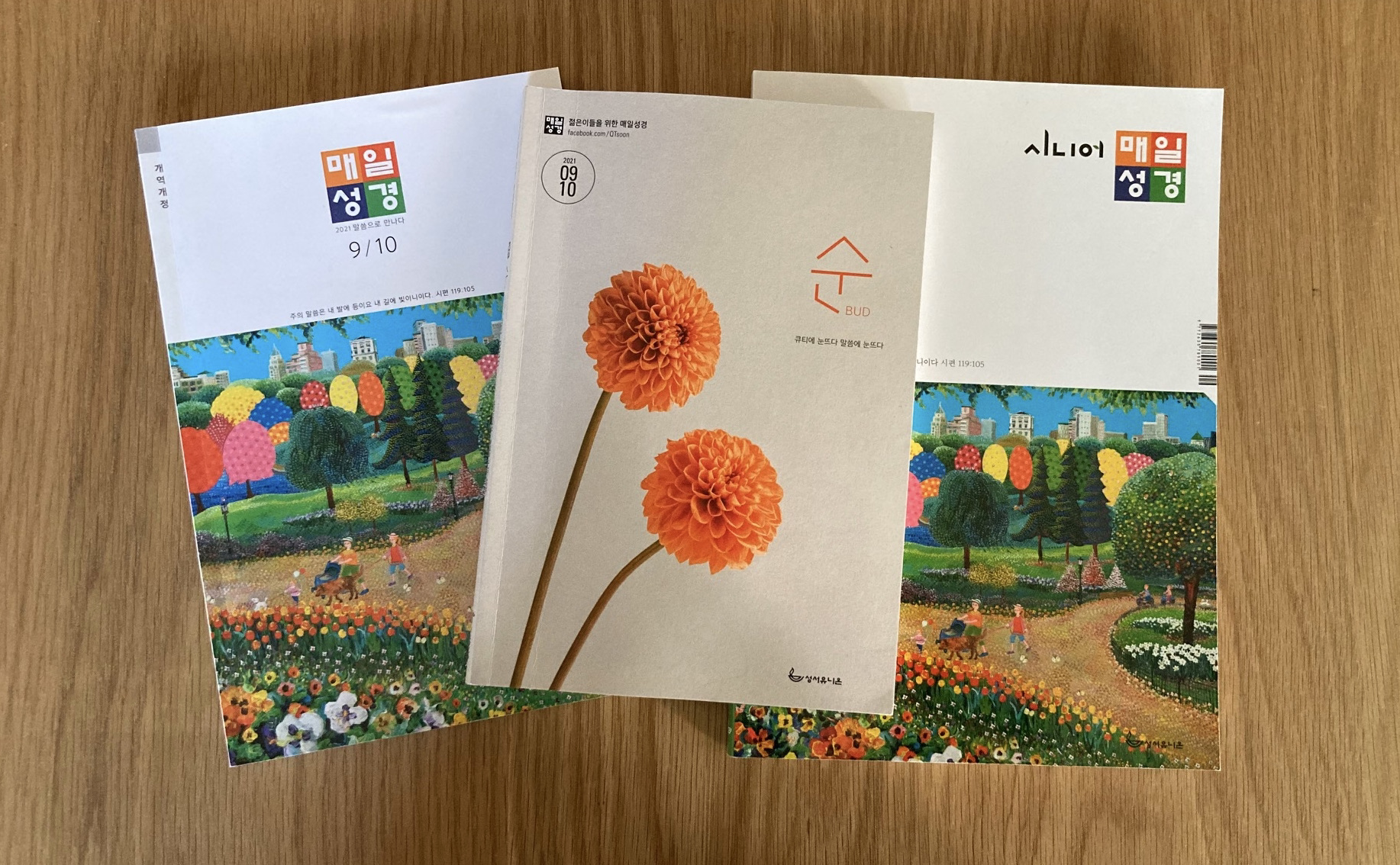 요즘 QT(Quiet Time)는 <매일성경>으로 하고 있다. <QTzine>을 폐간하고 얼마 안 지나 갓 창간된 <시니어 매일성경> 외주 편집자로 3년째 일하면서 성서유니온에서 나오는 QT지 3종을 받아 보고 있는데, 같은 본문을 연령층에 따라 조금씩 다른 스타일로 다루어 자연히 비교하며 보게 된다.