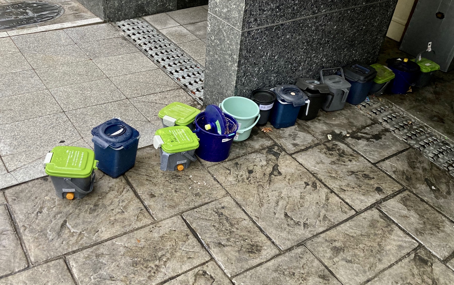 이 빌라에 사는 십여 가구가 배출하는 음식물 쓰레기통이었는데, 집안에 있던 걸 수거하는 날에 잊어버리지 않고 내놓은 모양새다(날을 놓치면 며칠을 냄새와 함께 살아야 한다). 우리 아파트 단지는 분리 쓰레기장에 각 가정에서 음식물 쓰레기를 가져와 모으는 커다란 통이 따로 있는데, 여기선 이런 방식으로 해결하는 것 같았다.