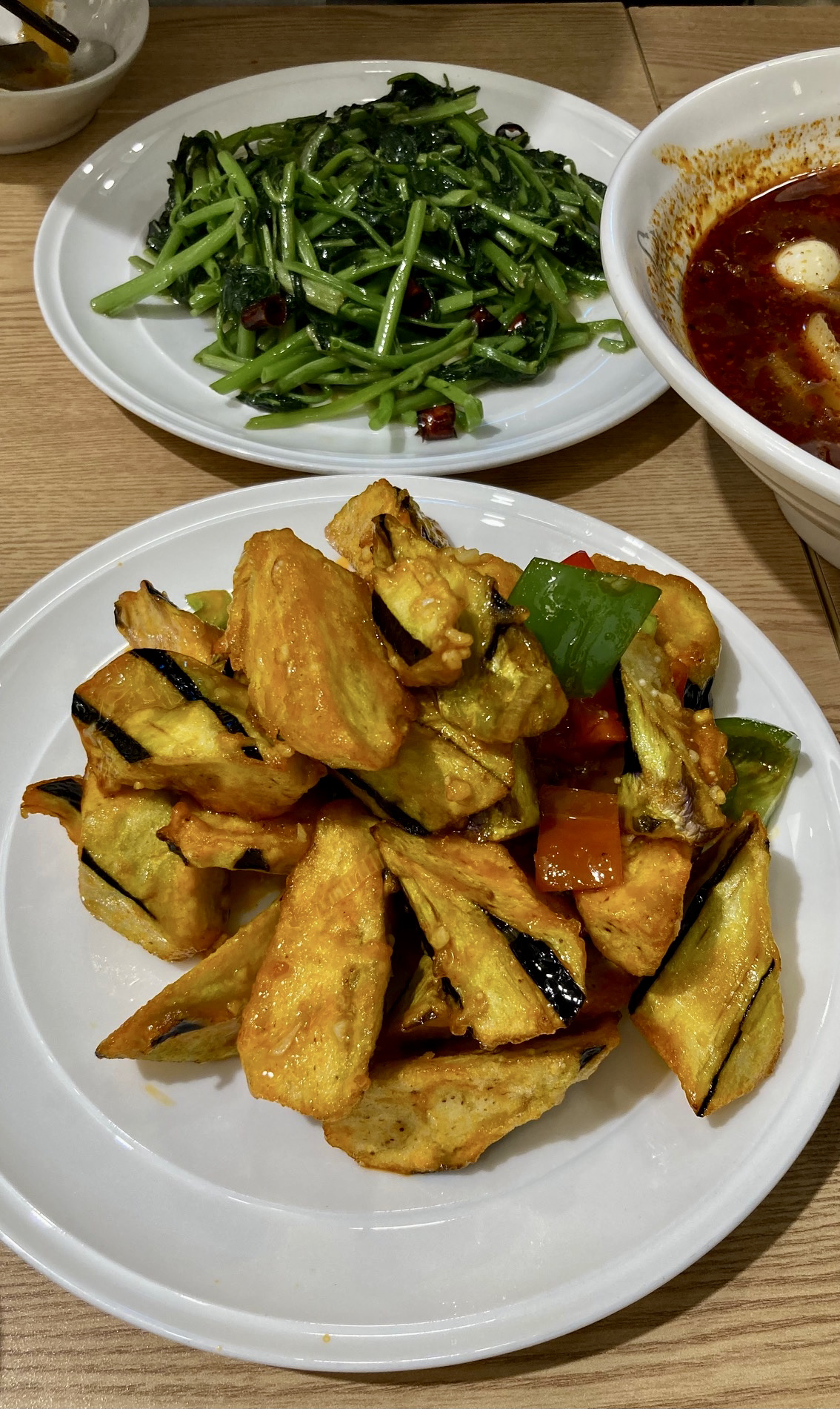 중국집에 왔으니 가지볶음도 건너뛸 수 없다. 마탕처럼 보이는 비주얼에 한 입 베물면 해물탕에 들어 있는 오만동이나 미더덕처럼 뜨거운 물을 내뿜어 입 천장을 조심해야 하지만, 끊임없이 먹힌다.