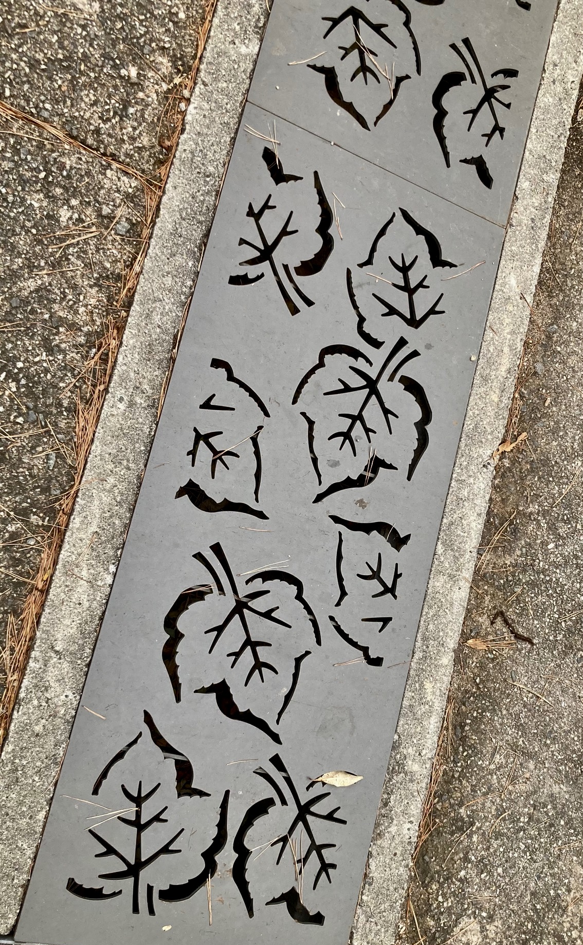 홍제동 백련산 산길에서 내려오는 주택가 아스팔트길 배수 덮개는 나뭇잎 모양을 하고 있었다. 주변 산에서 쉬 볼 수 있는 넙적하고 커다란 나뭇잎인데, 일렬로 반듯하게 배열하지 않고 산길에서처럼 아무렇게나 뒹구는 모양새를 하고 있었다.