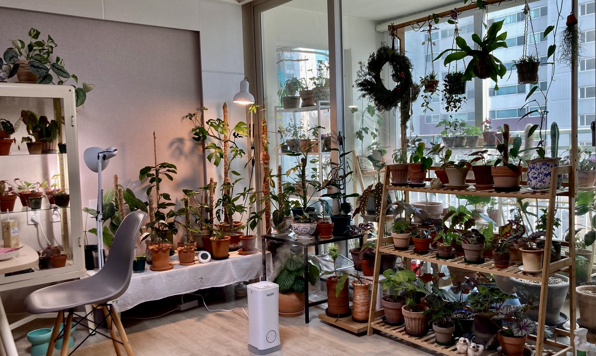 거실과 베란다, 식탁 옆까지 얼추 2백여 개의 화초들이 숨쉬며 자라고 있었는데, 딱히 치우치거나 처지는 것도 없고, 너무 도드라지거나 엉뚱한 것 없이 안정된 형태였다. 집집마다, 가드너마다 개성이 있겠지만, 이런 차분한 구성 아주 맘에 든다.