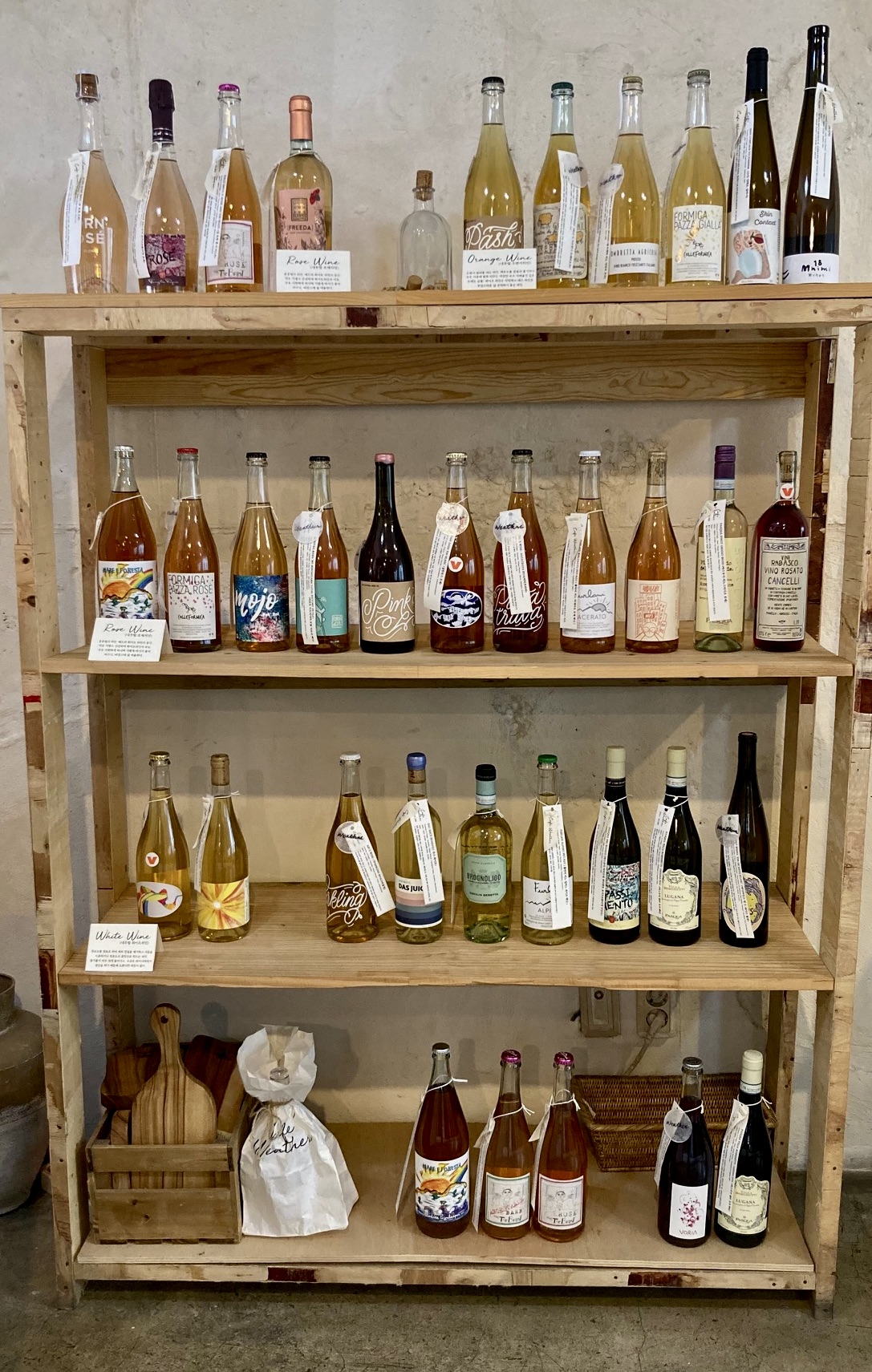 아마도 카페에서 가볍게 한 잔 하라는 용도로 마련된듯 싶은데, 레드와 화이트에 비해 조금 자유스러워 보이는 라벨 디자인들이 눈길을 끈다. 병마다 길게 달아 놓은 특성표들은 간택을 기다리고 있었다.