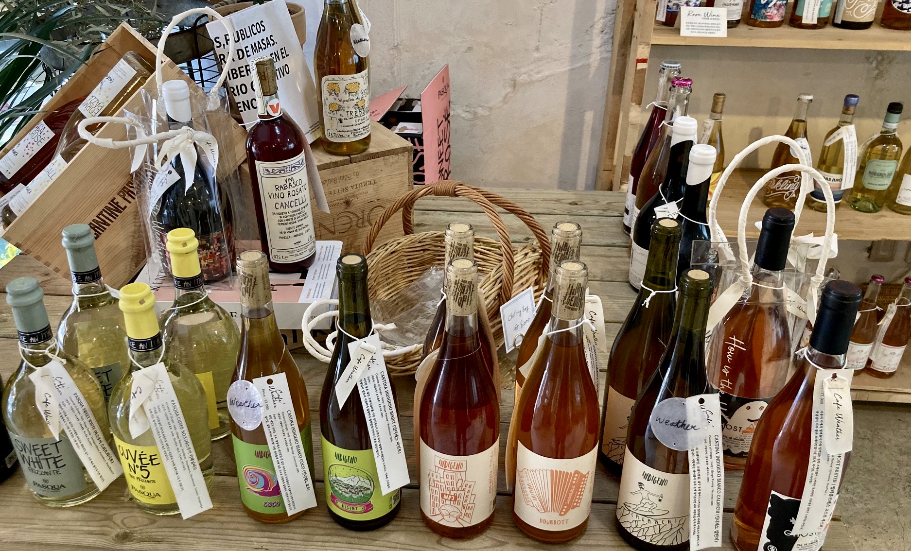 우리 동네 카페 웨더는 인테리어도 훌륭했지만, 한쪽에 따로 모아놓은 로제 와인 코너가 눈길을 끌었다. 장미꽃까진 아니어도 연한 핑크빛을 띠는 바람에 이런 이름이 붙었을 것 같은데, 외견상 왠지 레드나 화이트 와인에 비해 가벼울 것 같은 인상이지만, 마셔보기 전엔 속단할 수 없을 것이다.