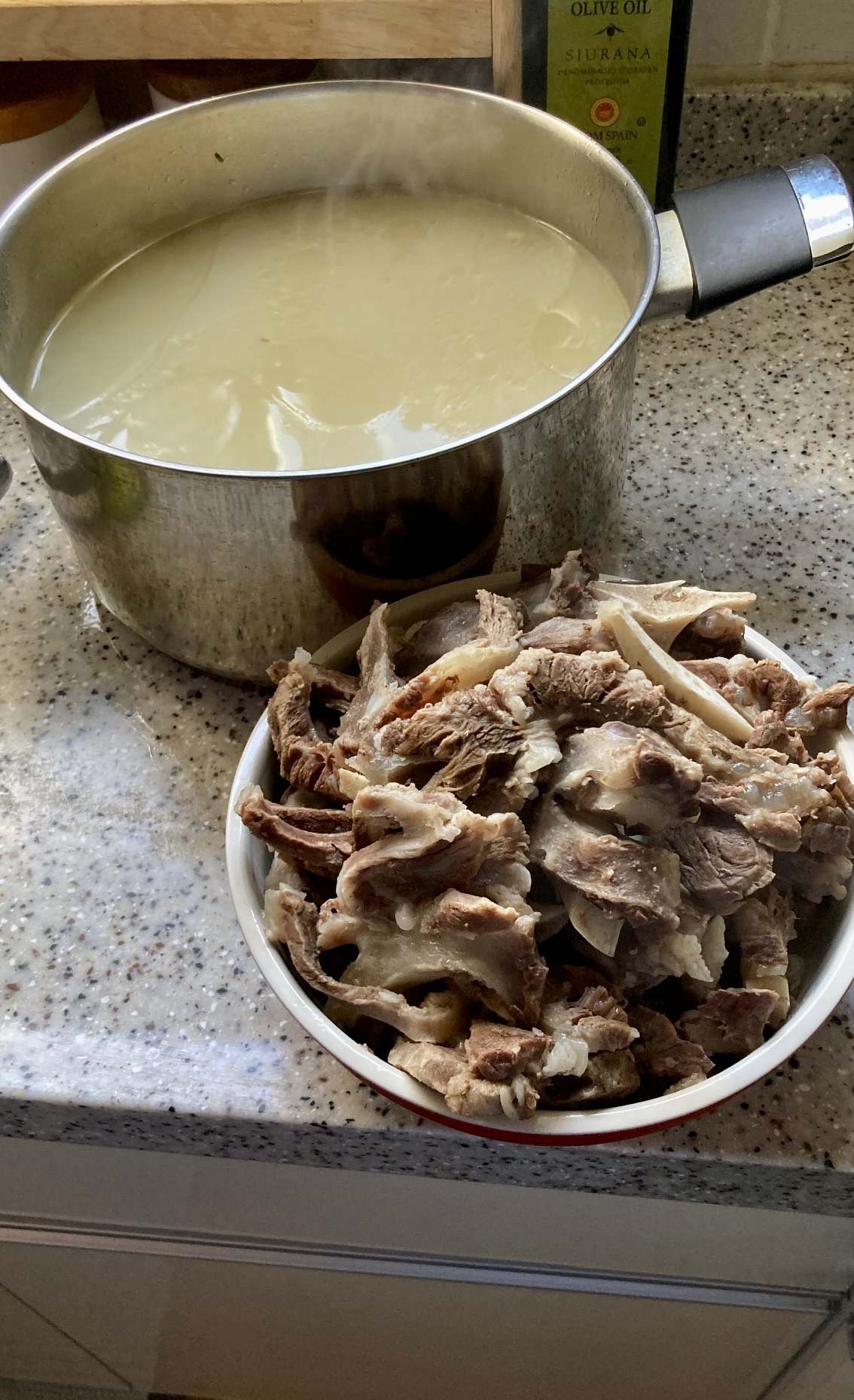 아내가 설 전전날 밤부터 끓이면서 기름을 걷어내고 다시 끓이기를 반복해 거의 10시간 가까이 끓인 끝에 맛있는 국물을 얻을 수 있었다. 그 사이에 꼬리와 반골에 붙은 고기도 잘 익어 푸짐한 게 아주 먹음직스러워 보였다. 먹는 입은 즐겁지만, 만드는 이의 노동을 생각하면 다음에 또 해 먹자는 말을 쉽게 못 할 것 같다.