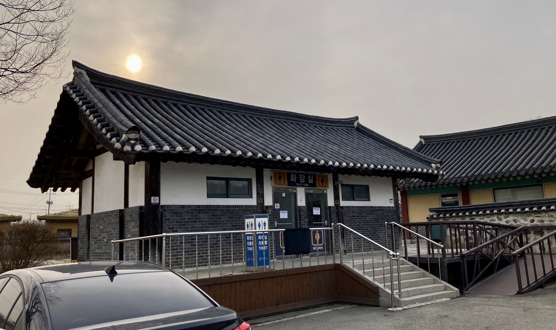 올들어 처음으로 여주에서 처남 부부를 만나 점심을 먹고, 명성황후 생가터에 마련된 황후의 뜰에서 감자전을 먹었다. 돌아오기 전에 화장실에 들렸는데, 넓은 주차장에 마련된 화장실 포스가 그럴듯했다. 전통 한옥 형태로 올린 팔작 지붕이 여느 화장실과 달리 품위가 있어 보였다.