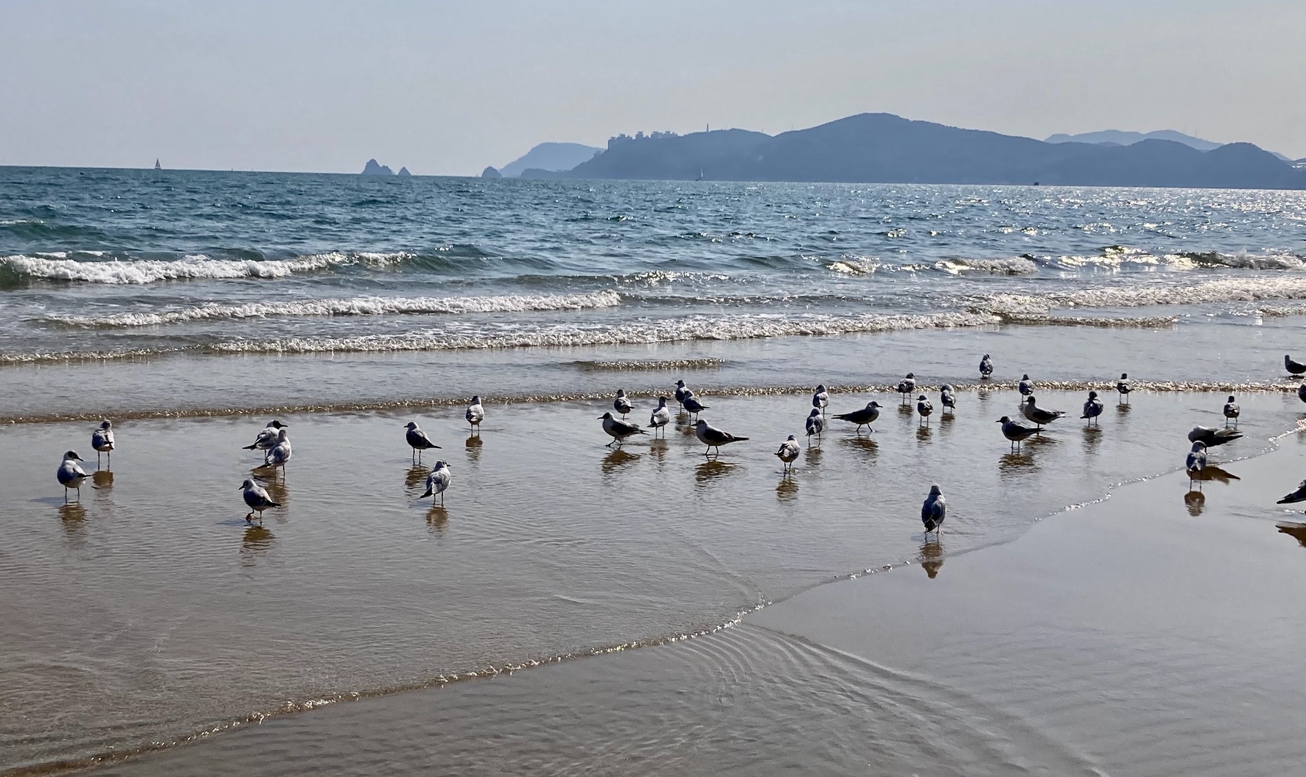해운대역에서 바닷가로 진입하는 길도 새로 놓여 있었는데, 그러고 보니 내가 본 해운대는 한참 전이었다. 넓디 넓은 백사장에 발을 디디니, 여유롭고 한가한 게, 이런 맛에 사람들은 그리도 해운대를 찾나 보다. 무리지어 앉아 있는 갈매기 떼들은 외지인들이 다가가도 전혀 신경쓰지 않고 제 하던 일을 하고 있다.