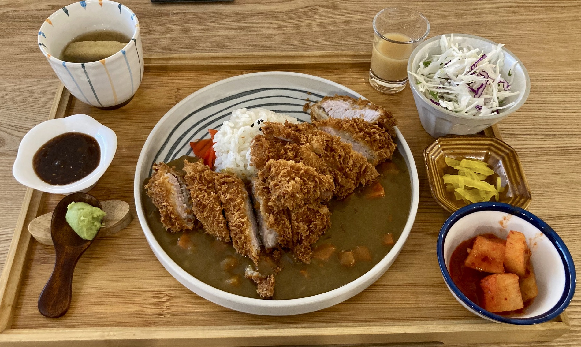 우유가츠와 치즈가츠를 반반씩 내는 반반가츠도 땡겼지만, 돈가츠와 카레의 조합이 주는 유혹을 떨치지 못해 카레가츠를 시켰다. 만5천원 안팎을 받는데, 카레가츠가 그 중 비싸다. 돈가스도 기본 이상은 했지만 뭔가 약간 아쉬웠고, 24시간 끓였다는 카레도 부드럽긴 해도 아주 특별하진 않았다. 예쁜 접시와 그릇은 눈에 띄었는데, 그 값이면 좀 더 스페셜하면 좋았겠다.