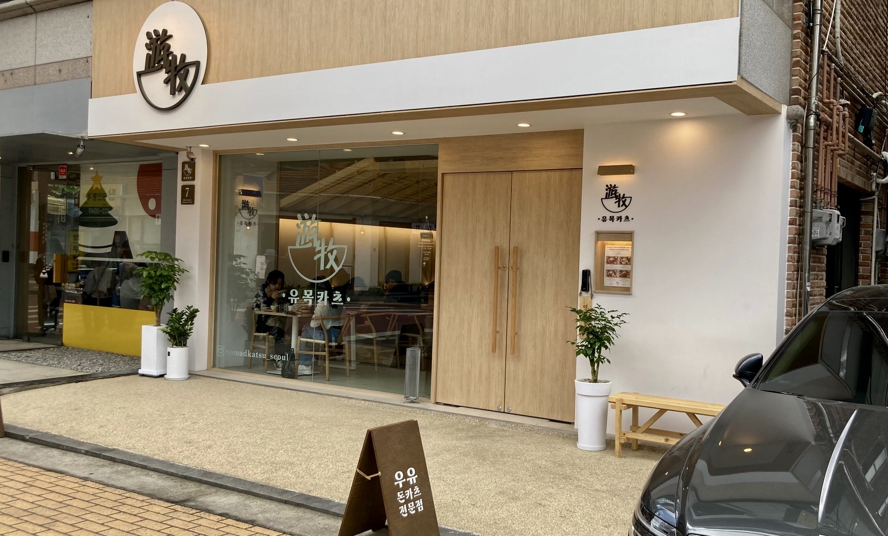 송파나루역 1번출구에서 시작되는 송리단길에 돈가스 집이 몇 군데 있다. 그 중에 유목이란 식당이 있는데, 세련되고 반듯해 보이는 외관으로 눈길을 끈다. 출입문이 식당치곤 고급스러워 보이는데, 내부도 정갈하다. 우유가츠와 치즈가츠 그리고 카레가츠를 내는 집이다.
