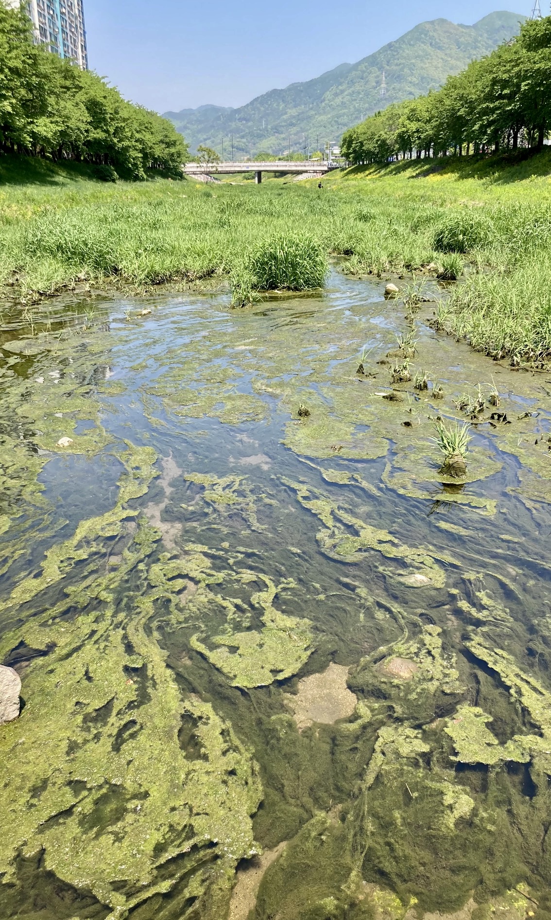 날이 따뜻해지면서 요즘은 수초가 많이 자라고 녹조도 많이 끼어 있다. 평소 물이 깨끗해서인지 아직까지 그리 지저분해 보이지는 않는데, 그냥 두다가는 온통 수초와 녹조 세상이 되고, 악취도 풍길 텐데, 그 전에 손을 쓰겠지.