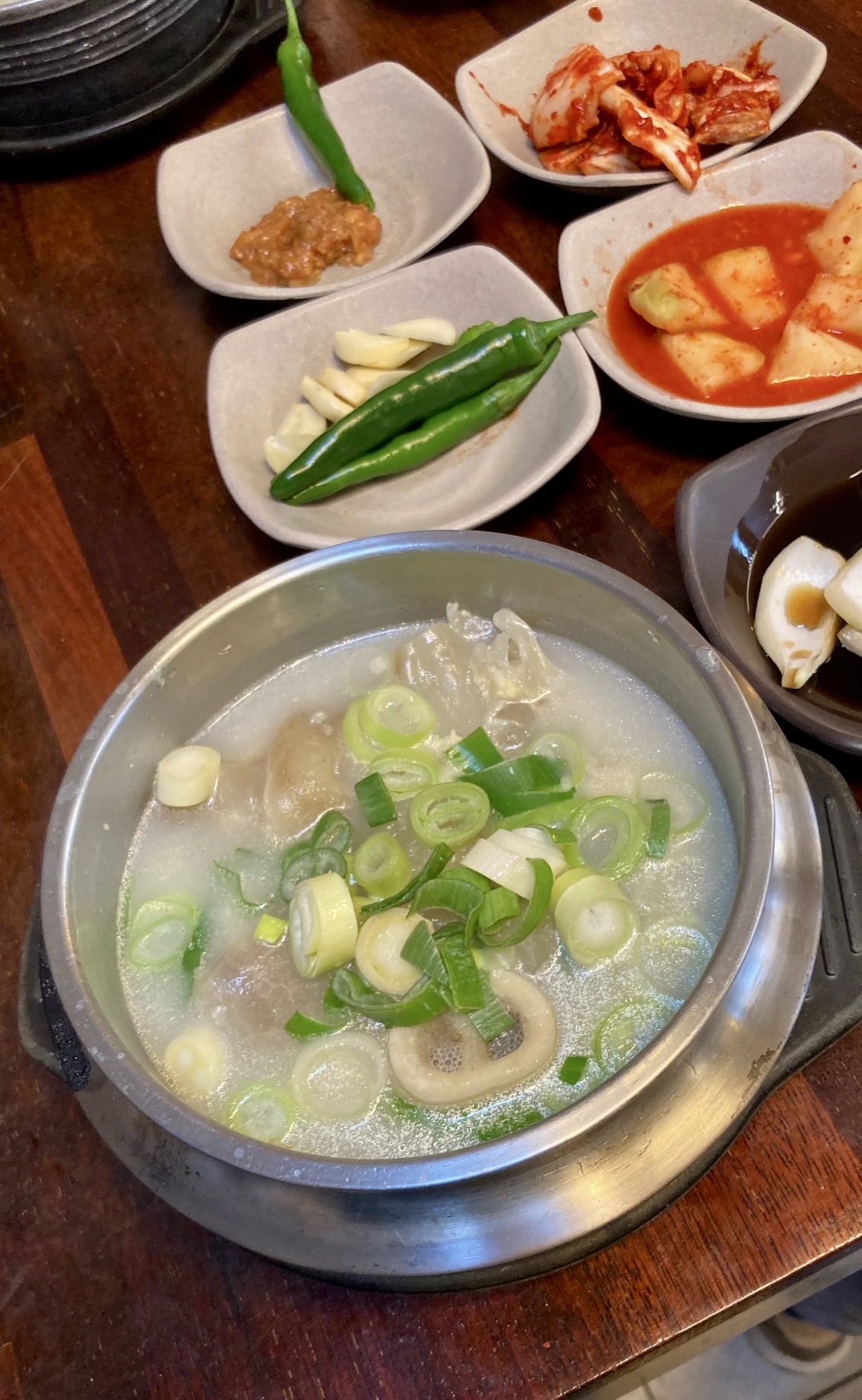 도가니탕과 우족탕, 갈비탕, 꼬리곰탕 등 탕 종류와 모듬 수육을 파는데, 점심시간대엔 탕만 팔아 도가니탕과 우족탕을 하나씩 시켰다. 입소문이 나서인지, 기다리는 이들도 제법 됐는데, 푸짐하게 들어 있는 도가니와 우족을 양파간장에 찍어 먹는 맛이 좋았다.