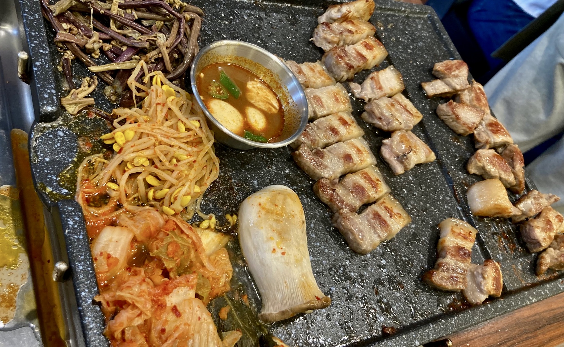 넷이서 오겹살 3인분+목살 2인분+항정살 1인분에 김치찌개와 날치알밥에 곁들임 음료 한 병이면 충분했다. 계산도 g가 기분 좋게 해서, 더 맛있었는지 모르겠다.^^ 식사 후 역 앞에 있는 Broaden 커피는 막내가 냈다. 요즘은 얻어 먹는 재미가 쏠쏠하다.