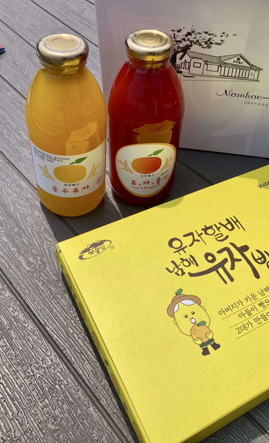 유자빵은 속에 유자 카스타드 크림이 들어 있는데, 작지만 맛이 있어 12개 들어 있는 걸 당일 거의 다 먹었다. 유자는 고흥이 유명한데, 남해에서도 많이 난다고 한다. 유자 원액은 설탕을 넣은 유자청과는 달리 아주 신 게 깊은 맛이 느껴졌다. 집에 가져가서 먹으려다가 아침에 쥬스 대신 탄산수를 넣고 마셨는데, 상큼했다.
