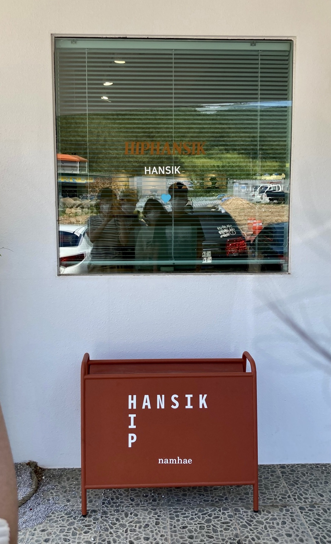 이번 남해여행에서 먹은 것들은 모두 g가 알아봤는데, 이중 삼중으로 반응을 확인하며 고르는 것 같았다. 그 중 현장에서 선착순 예약과 동시에 주문하는 힙한식이란 식당이 있었는데, 가려는 날이 토요일 점심이라 대기가 길어 못 먹을 가능성도 있지만 꼭 가고 싶어 했다.