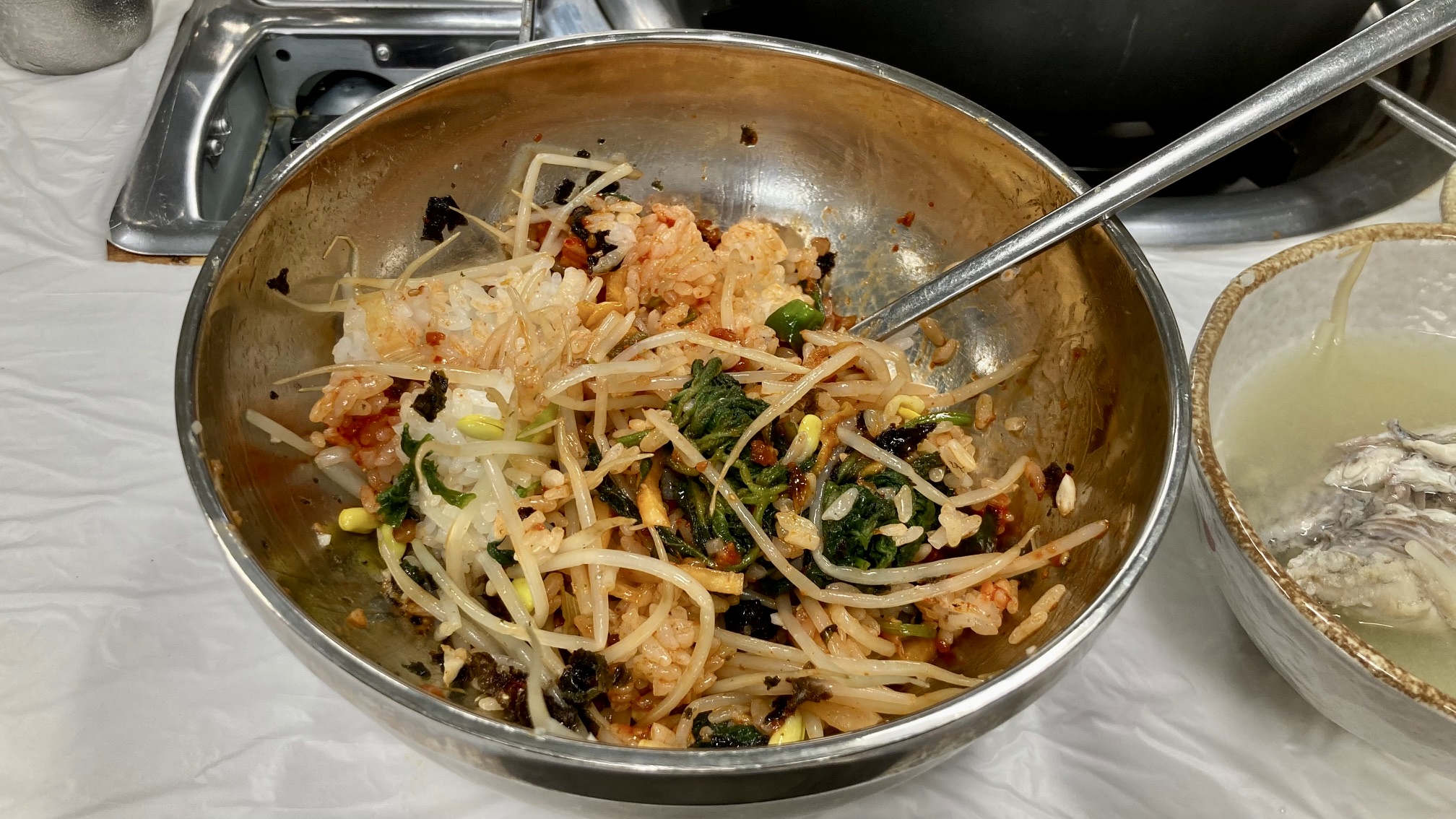 김가루가 담겨 나온 대접에 콩나물과 미나리를 건져낸 다음 밥을 넣고 멍게와 낙지젓을 넣고 쓱쓱 비벼 먹으면서 살점이 튼실한 복국을 먹는 남해에서의 마지막 식사를 즐겼다. 복국과 복튀김 먹으러 다시 가고 싶은, 이번 남해여행 통털어 가장 기억에 남는 인상적인 식당이었다.