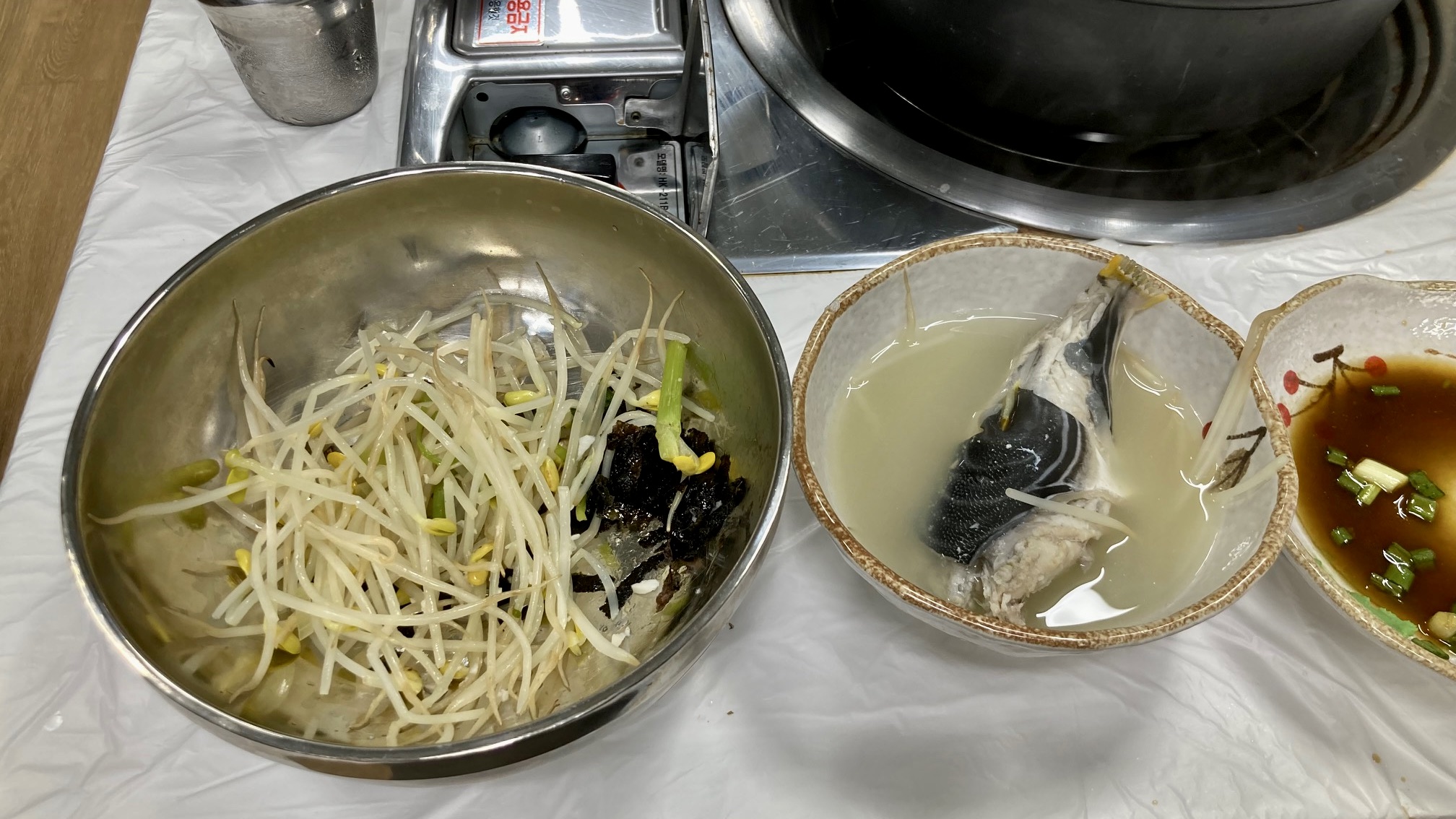 4인이 복국 대 자와 튀김(2만원)을 시켰더니, 식당 주인 아주머니가 대 자는 많을 거라며 중 자(4만원)도 충분할 거란다. 이쯤 되면 이 식당에 대한 믿음이 커질 수밖에 없다. 멍게, 낙지젓 등 반찬도 맛있다.