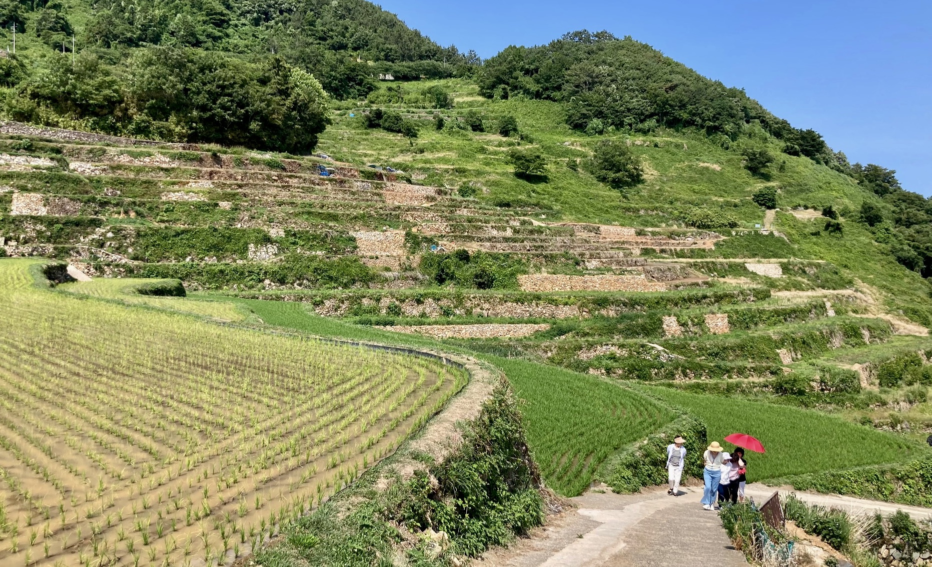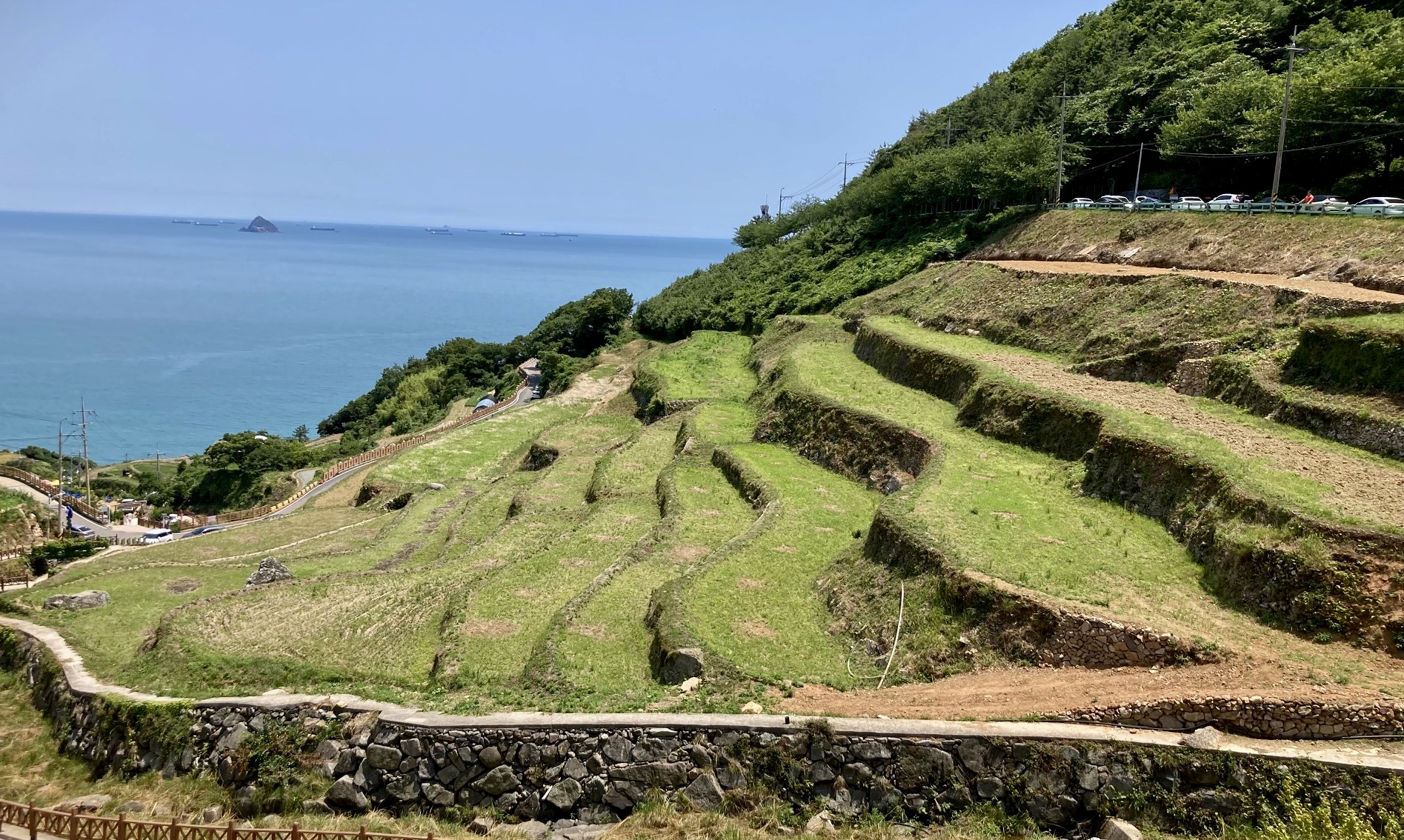 또 하나, 남해엔 생각보다 산이 많았는데, 그 중 경사진 땅도 그냥 두지 않고 경작지로 개발한 다랭이 마을이 볼만 하다길래 토요일 오후에 가 봤다. 다랭이는 사전에는 다랑이로 나와 있는데, 비탈진 산골짜기에 여러 층으로 겹겹이 만든 좁고 작은 논을 지칭하는 말이다.