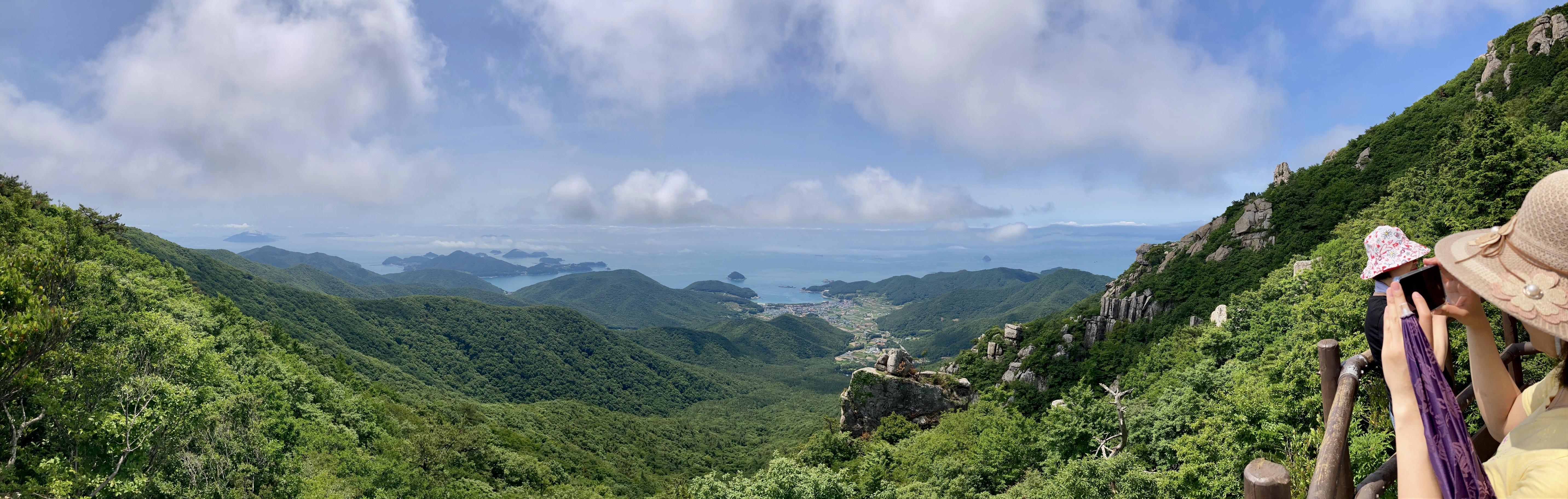 남해까지 와서 뭔 산 하면서 하마터면 안 갈 뻔 했는데, 마지막날 아침에 안 왔으면 후회할 뻔 했다. 포토존이 한두 군데가 아니었고, 당연히 파노라마 사진이 빠질 수 없다.