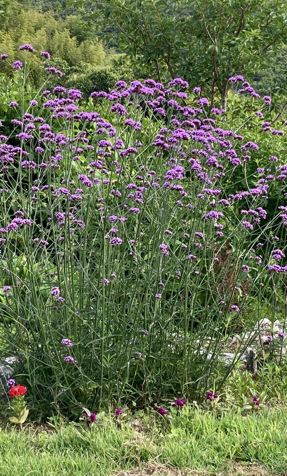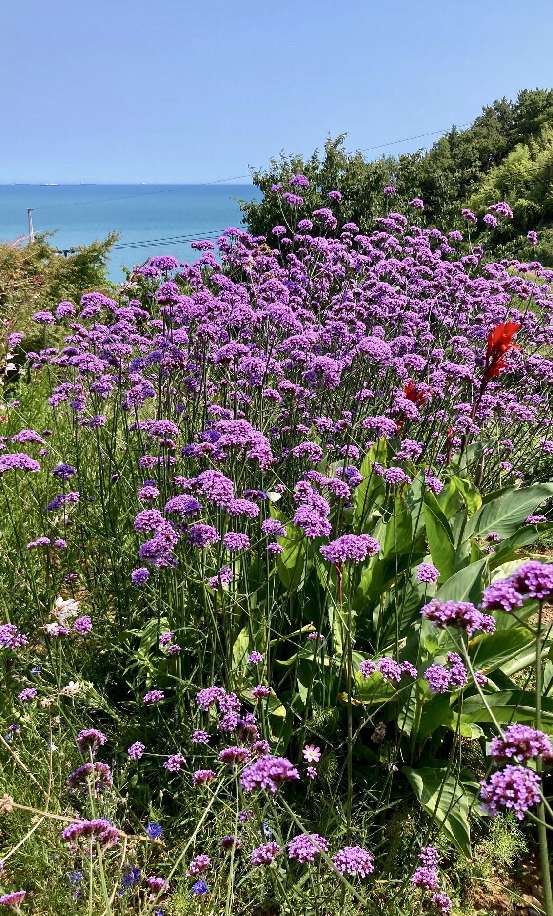 이름이 궁금해 다랭이마을 고운동 카페에 갔을 때 물어보니 버들마편초란다. 한강공원의 유채꽃이나 홋카이도 후라노의 라벤다 농원(6/26/18)처럼 넓은 공간에서 피어나면 관광상품이 될지 모르겠다.