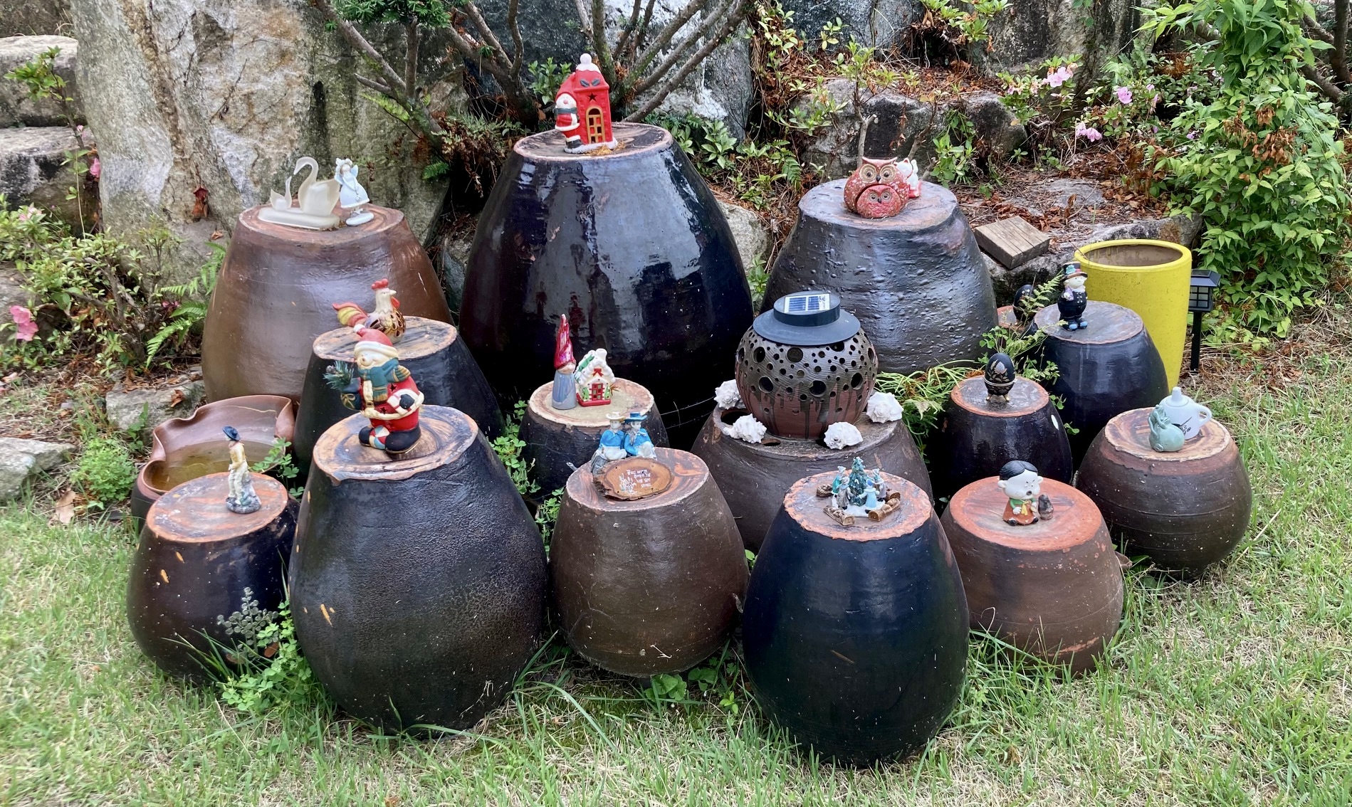 남해를 여행하는 동안 항아리들이 옹기종기 모여 있는 풍경이 눈길을 끌었다. 독일마을 어느 집 마당엔 거꾸로 놓인 항아리들 위에 작은 독일풍 인형과 장식물들이 놓여 있었다. 이 집 주인이 한때 살았던 독일에서도 이 비슷한 풍경을 이루었을 것 같은데, 고국에 돌아와 정착한 이제는 제2의 고향 독일을 그리워하는 모양이다. 고향을 추억하게 하는 건 종류와 크기에 상관없지 싶다.