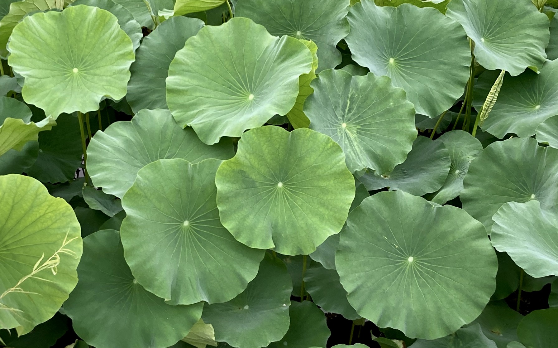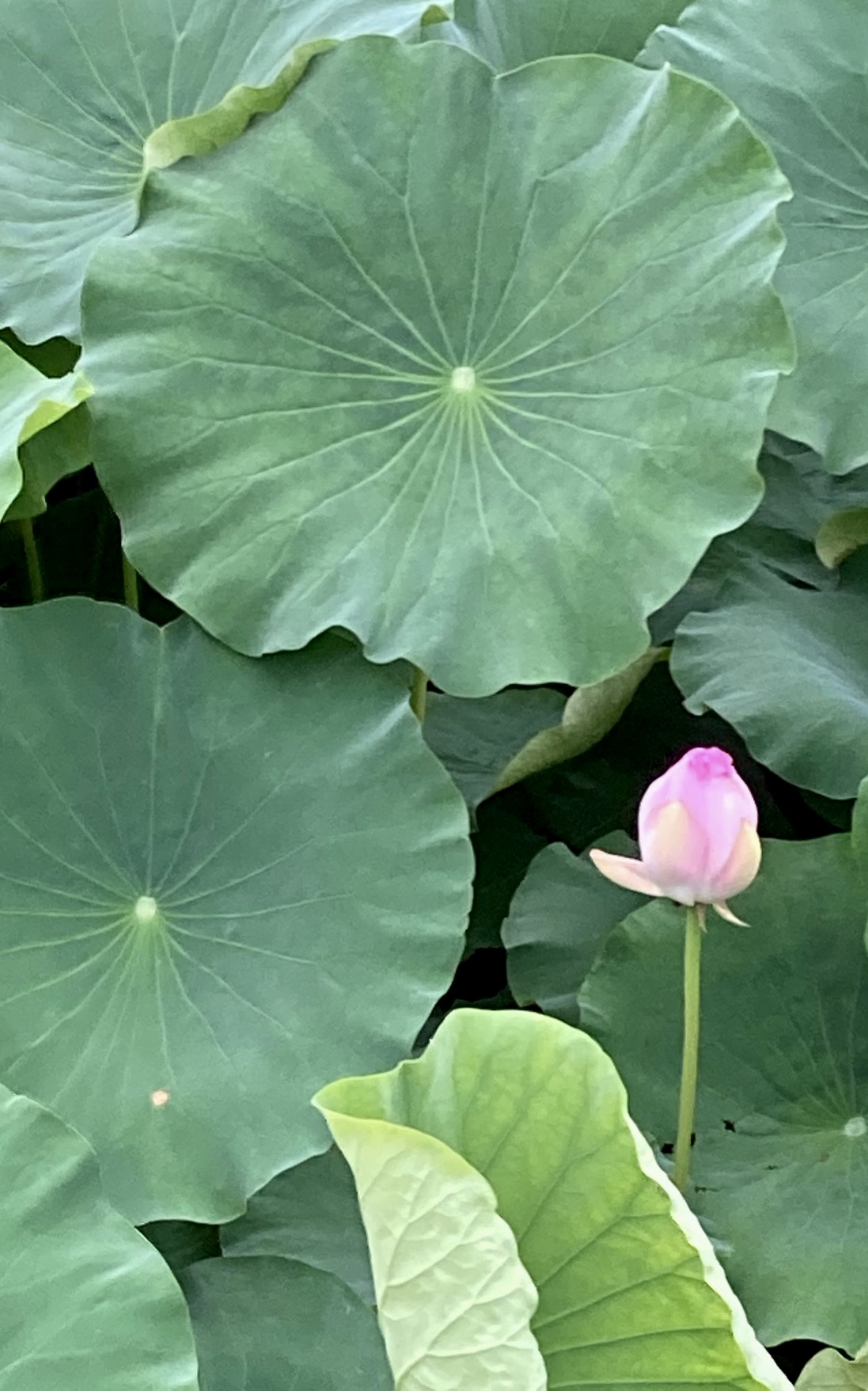 강변 산책로 중간길엔 연못이 있는데, 연꽃이 한창이다. 심벌즈보다 더 큰 연잎들이 주렁주렁, 아니 수두룩빽빽 수면이 안 보일 정도로 나 있다. 저녁을 먹었는데도 문득 연입밥 생각이 난다.^^