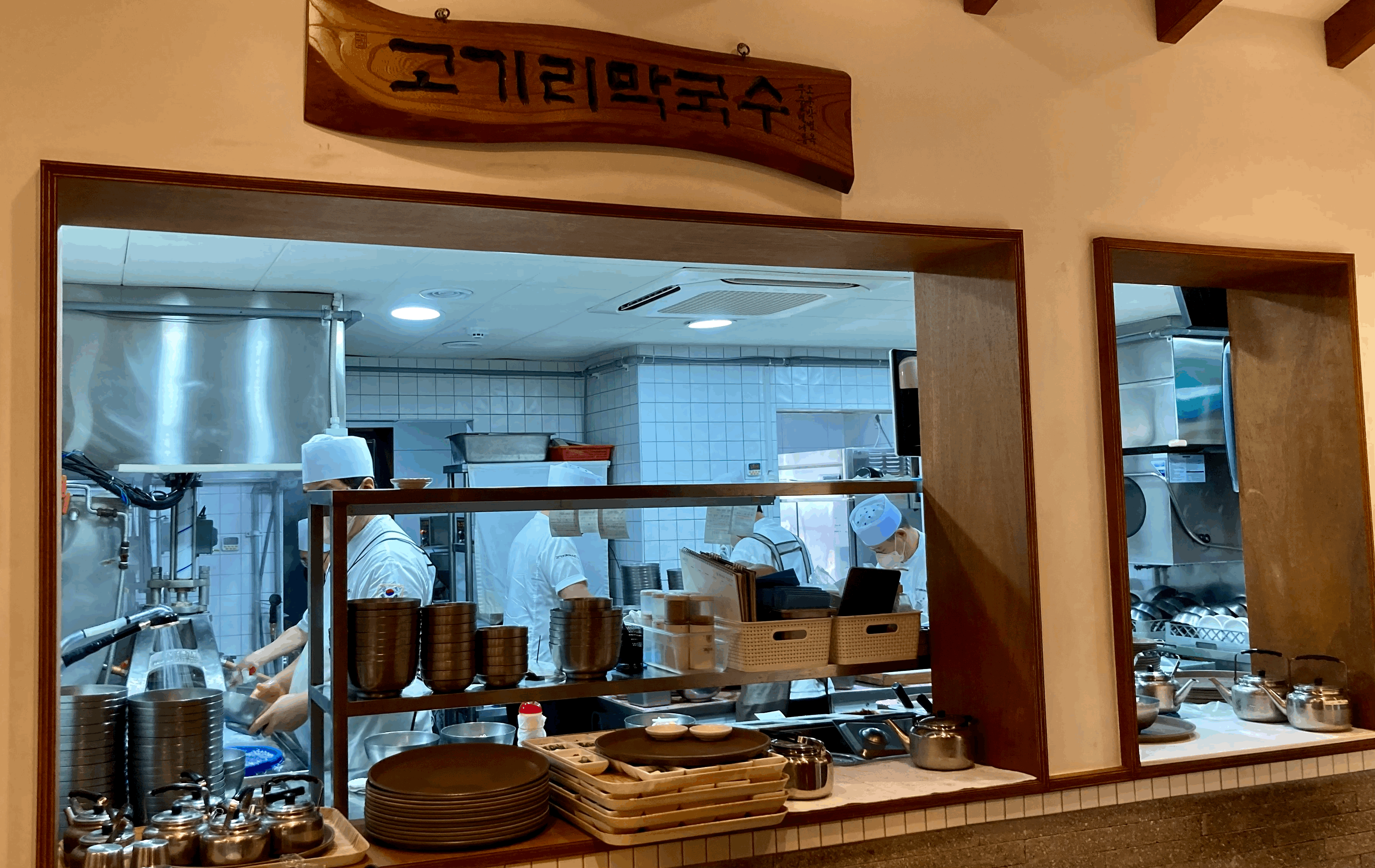 큼지막하지만 얇게 썰린 수육은 부드럽고 기름졌다. 물김치는 리필해도 될 정도로 맛있다. 둘이 가면 막국수 곱배기를 시킬까, 보통에 수육을 시킬까 고민하게 할 것 같다. 허름한 집이었는데, 미어드는 식객들로 3년 전에 새로 단장했다는 식당 안팎은 깔끔했다. 딘타이펑처럼 오픈된 주방은 자신감 또는 자부심일 것이다.