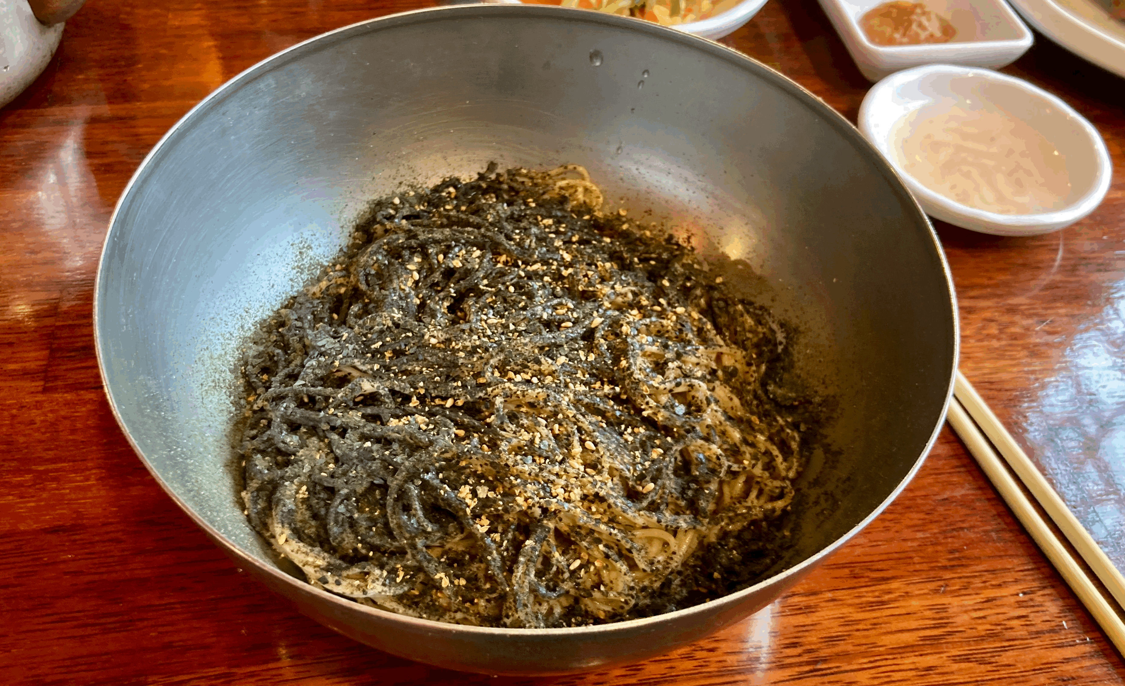 미국 코스타 37년만에 비목회자, 여성 강사로 둘째 날 저녁 메시지를 전한 larinari님의 무용담(치솟은 항공료 탓에 반대 방향인 카타르를 거쳐 30시간 걸려 미국을 오간 것부터)을 들으려 바라산 자락에 있는 고기리 들기름 막국수 집에서 만났다. 꼬불꼬불 좁은 산길에 주차도 어려울 정도로 웨이팅이 심하다는데, 평일 이른 저녁 시간대여선지 바로 앉을 수 있었다.